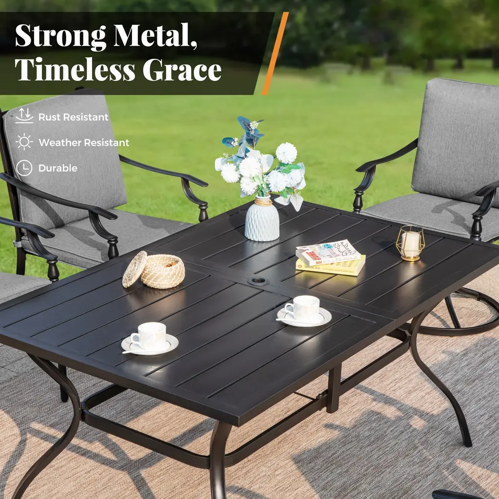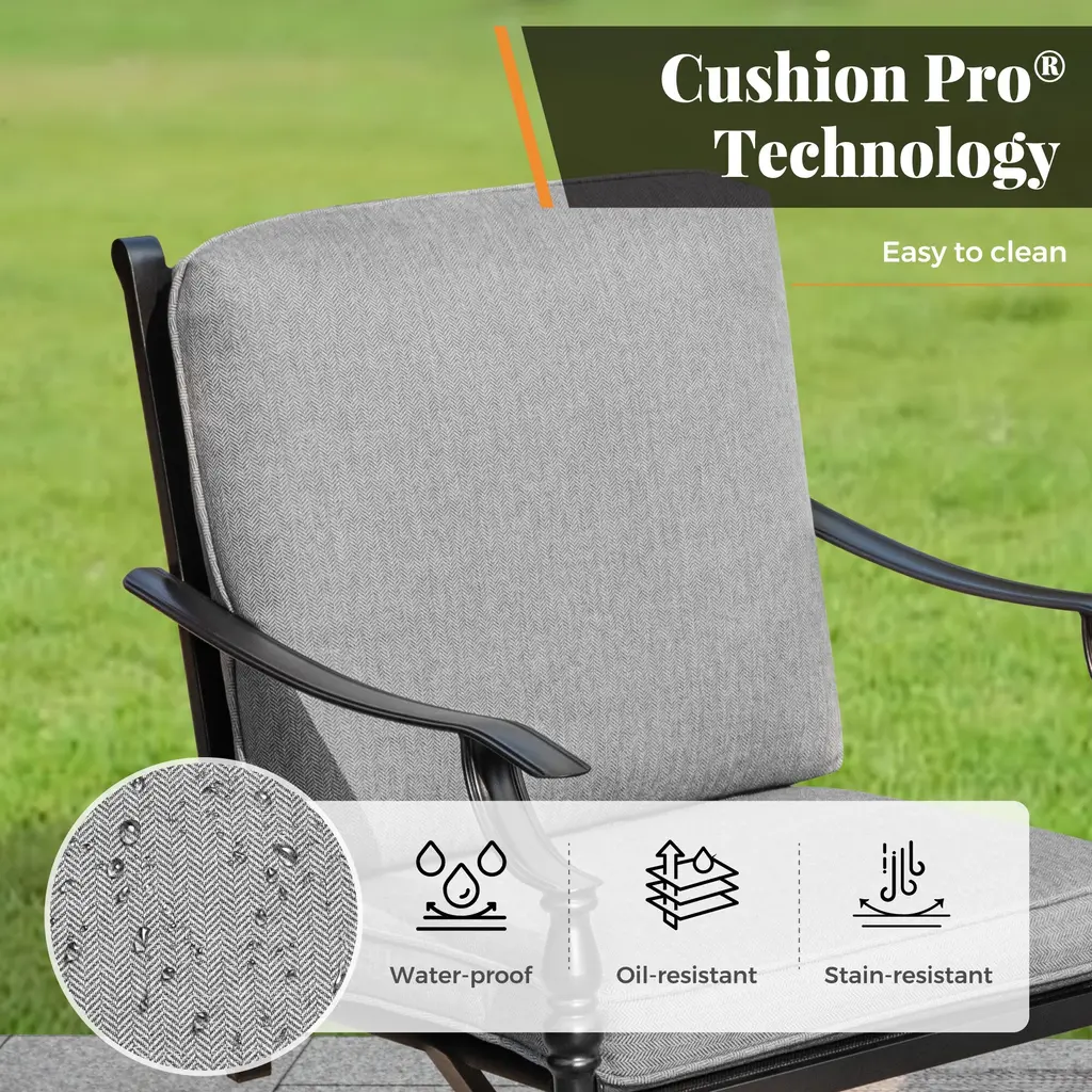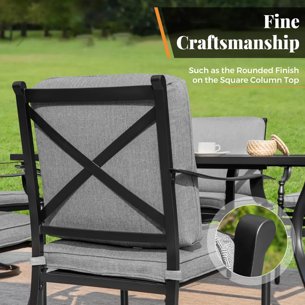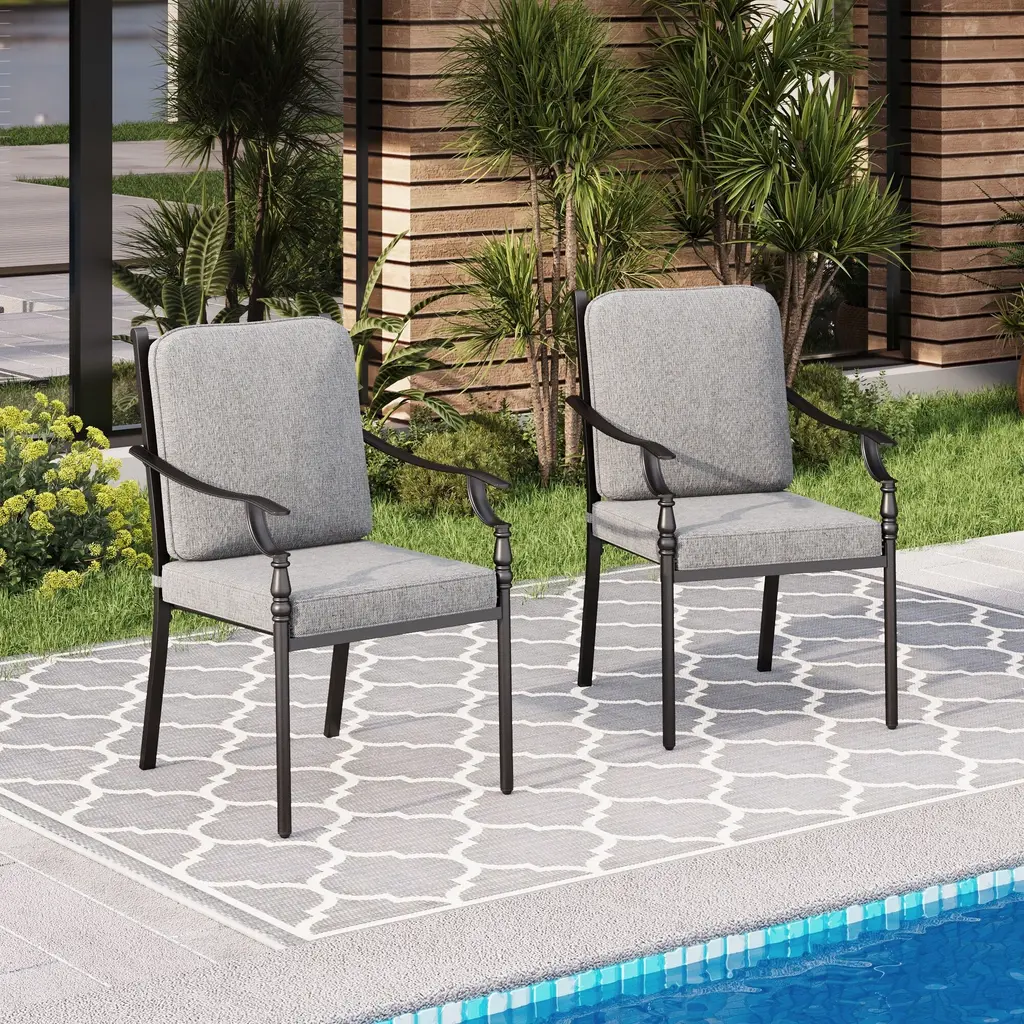 Description:Upgrade your outdoor space with our Outdoor Patio Dining Chairs Set, available in two styles: a traditional model and a multifunctional swivel model. Both options feature heavy-duty wrought iron construction for durability and support up to 300 lbs, making them perfect for any patio, balcony, garden, or poolside. The plush cushions ensure comfort while offering weather resistance, allowing you to enjoy your chairs in any season.Features:::Dimensions: Fixed Chair: 23.6"W x 27.2"D x 37.3"H Swivel Chair: 23.6"W x 27.2"D x 37.3"H Weighty Capacity: 300 IBS