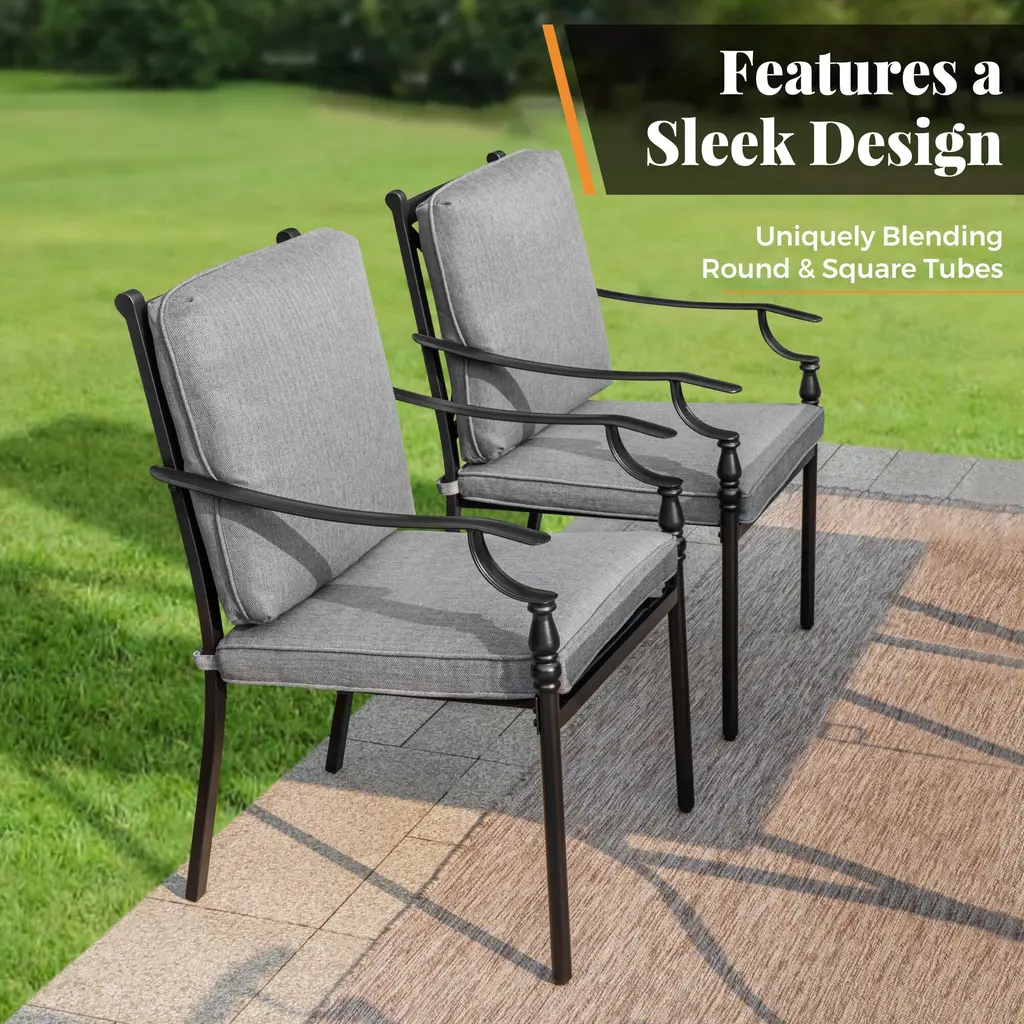 Maison Arts Outdoor Patio Dining Chairs Set Of 2: Heavy Duty Wrought Iron (Fixed & Swivel) - Fixed Chair