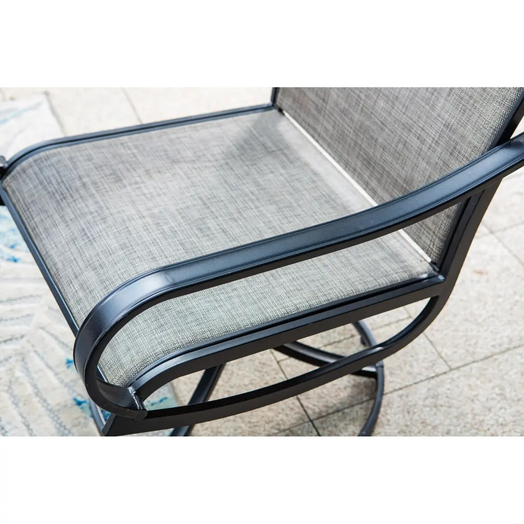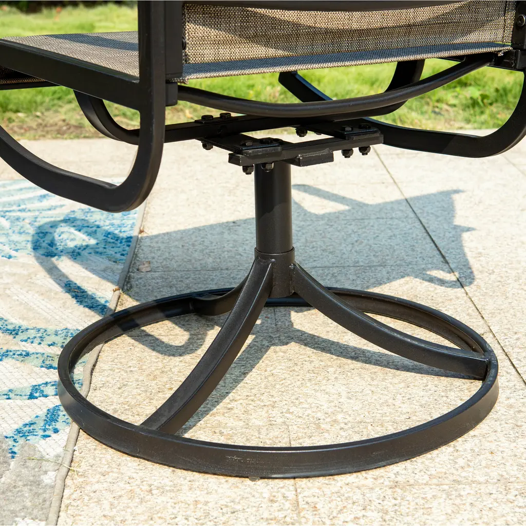 This chair is able to swivel in 360 degrees, as well as rock slightly back and forth. This provides the maximum amount of comfort when using this chair. If you're eating outside, relaxing with loved ones, or simply enjoying the weather, these chairs are exactly what you need. All of our patio dining chairs are outfitted with special Textilene fabric, which offers excellent permeability and easily contours to the shape of your body. Quick-drying and UV-resistant, patio swivel chairs are long-lasting, easy to clean, and exceptionally comfortable. Features: