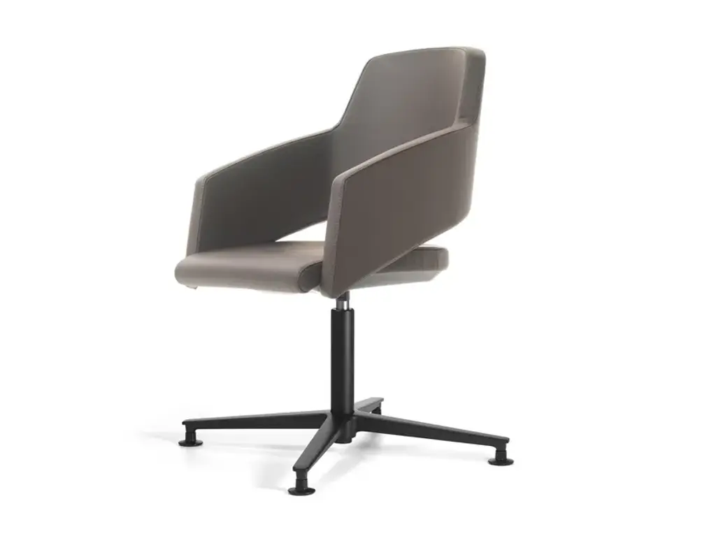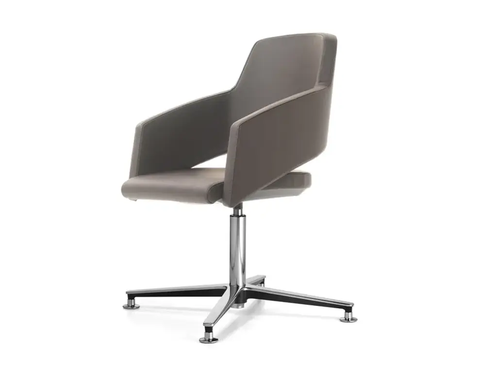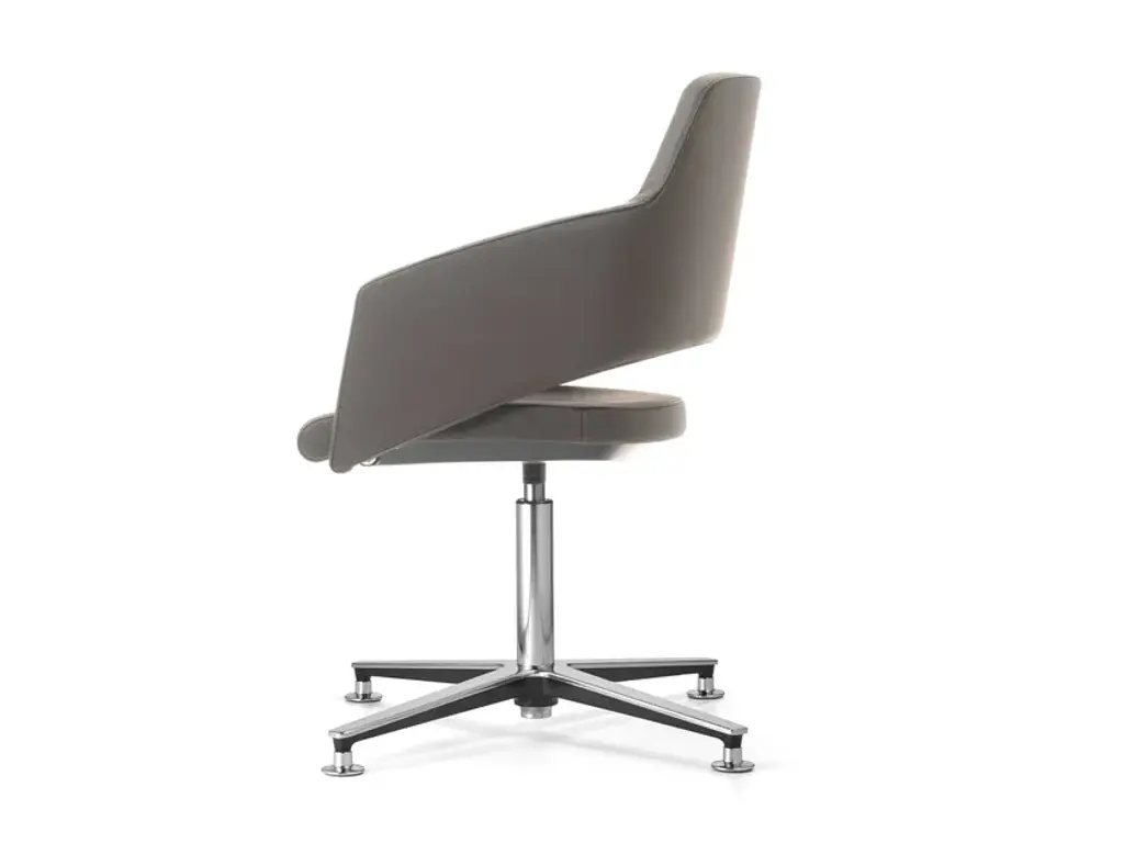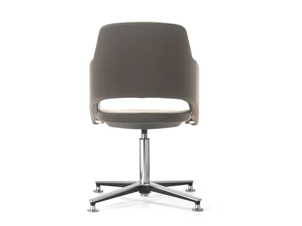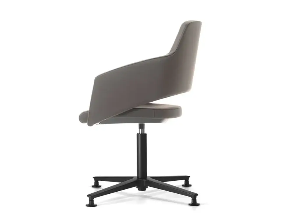 Major is an upholstered chair. A perfect combination between backrest and seat, which creates an unusual furnishing element but perfectly balanced. The Major collection consists of totally customizable and adaptable chairs and stools, able to change aspect thanks to the varieties of the different elements available. The simple and comfortable design start off with chairs with graphic lines but at the same time soft. It is designed for contract and domestic environments. The base is available in different versions: steel sled base or 4 legged steel frame, pyramidal base in solid walnut canaletto or olive ash. It's possibile to have an high or low backrest with a wooden rear. The chair can be swivel or equipped with a wooden writing tablet.