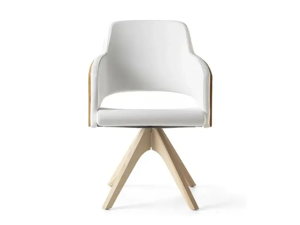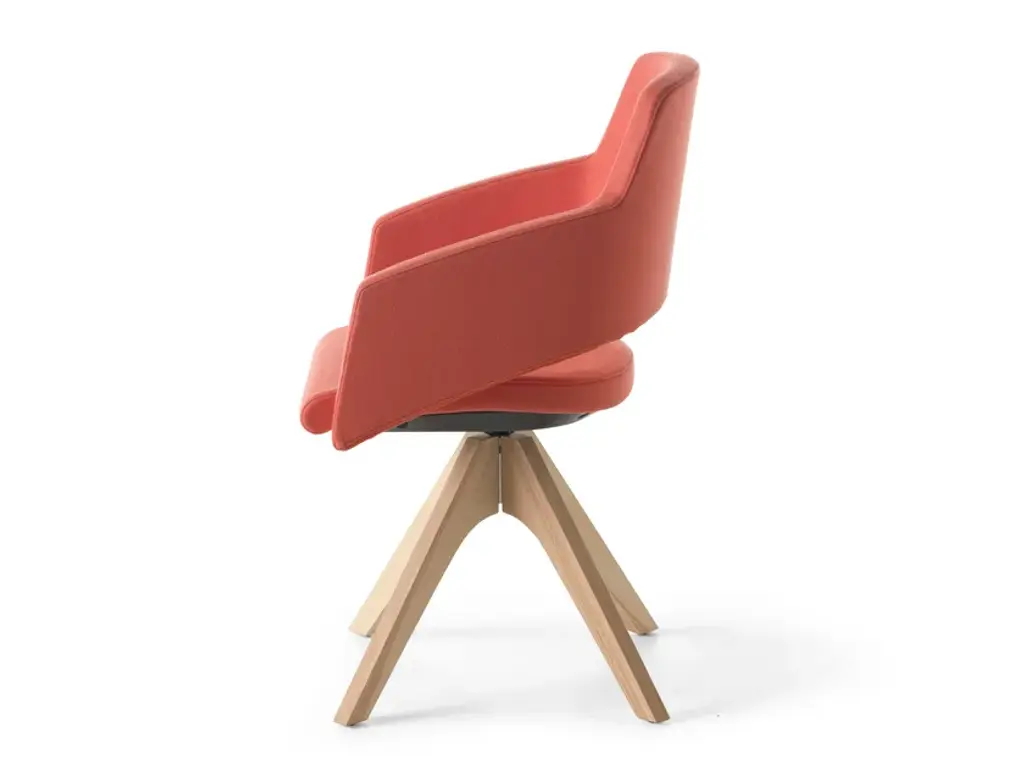 Major is an upholstered chair. A perfect combination between backrest and seat, which creates an unusual furnishing element but perfectly balanced. The Major collection consists of totally customizable and adaptable chairs and stools, able to change aspect thanks to the varieties of the different elements available. The simple and comfortable design start off with chairs with graphic lines but at the same time soft. It is designed for contract and domestic environments. The base is available in different versions: steel sled base or 4 legged steel frame, pyramidal base in solid walnut canaletto or olive ash. It's possibile to have an high or low backrest with a wooden rear. The chair can be swivel or equipped with a wooden writing tablet.