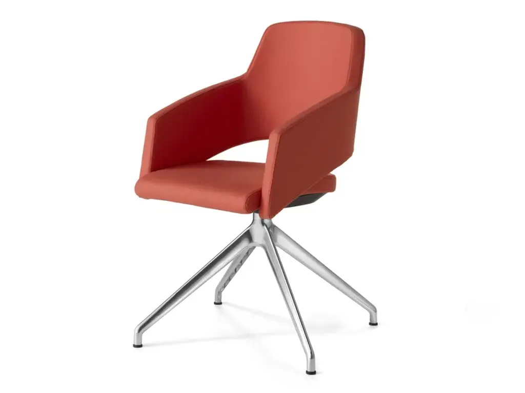 Major is an upholstered chair. A perfect combination between backrest and seat, which creates an unusual furnishing element but perfectly balanced. The Major collection consists of totally customizable and adaptable chairs and stools, able to change aspect thanks to the varieties of the different elements available. The simple and comfortable design start off with chairs with graphic lines but at the same time soft. It is designed for contract and domestic environments. The base is available in different versions: steel sled base or 4 legged steel frame, pyramidal base in solid walnut canaletto or olive ash. It's possibile to have an high or low backrest with a wooden rear. The chair can be swivel or equipped with a wooden writing tablet.