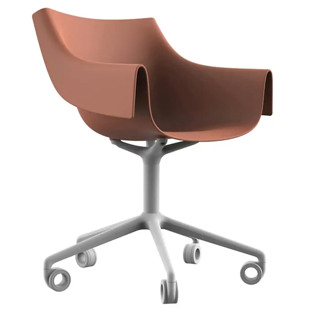 Seating designed to enhance your work or play. Named after the Spanish word for shawl, the Manta Outdoor Swivel Caster Armchair - Set of 2 by Vondom does indeed have a look like soft, draped fabric. However, it is actually made using exceedingly durable materials, starting with the fiber-reinforced polypropylene seat. The comfortably curving seat sits atop a unique caster base that allows the armchair to swivel and glide across a floor indoors as well as out. Designed by Eugeni Quitllet.