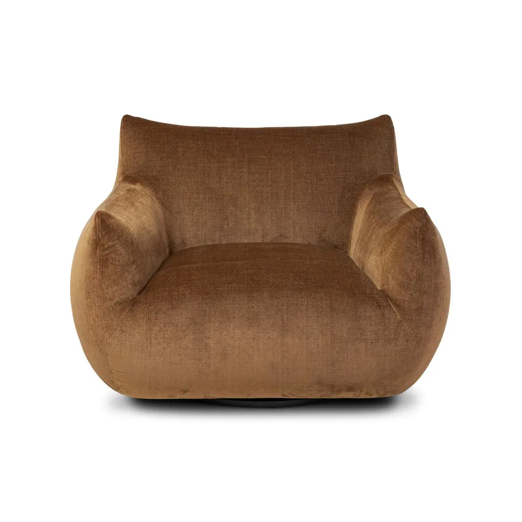 Indulge in total luxury with the Margot Swivel Lounge Chair from Four Hands. A modern reinterpretation of a vintage style, this sink-in chair boasts S-spring suspension for optimal comfort and durability. Its 360-degree swivel allows for effortless movement while the 100% poly chenille upholstery adds a touch of opulence with its soft texture and subtle color-shifting properties. Highlights