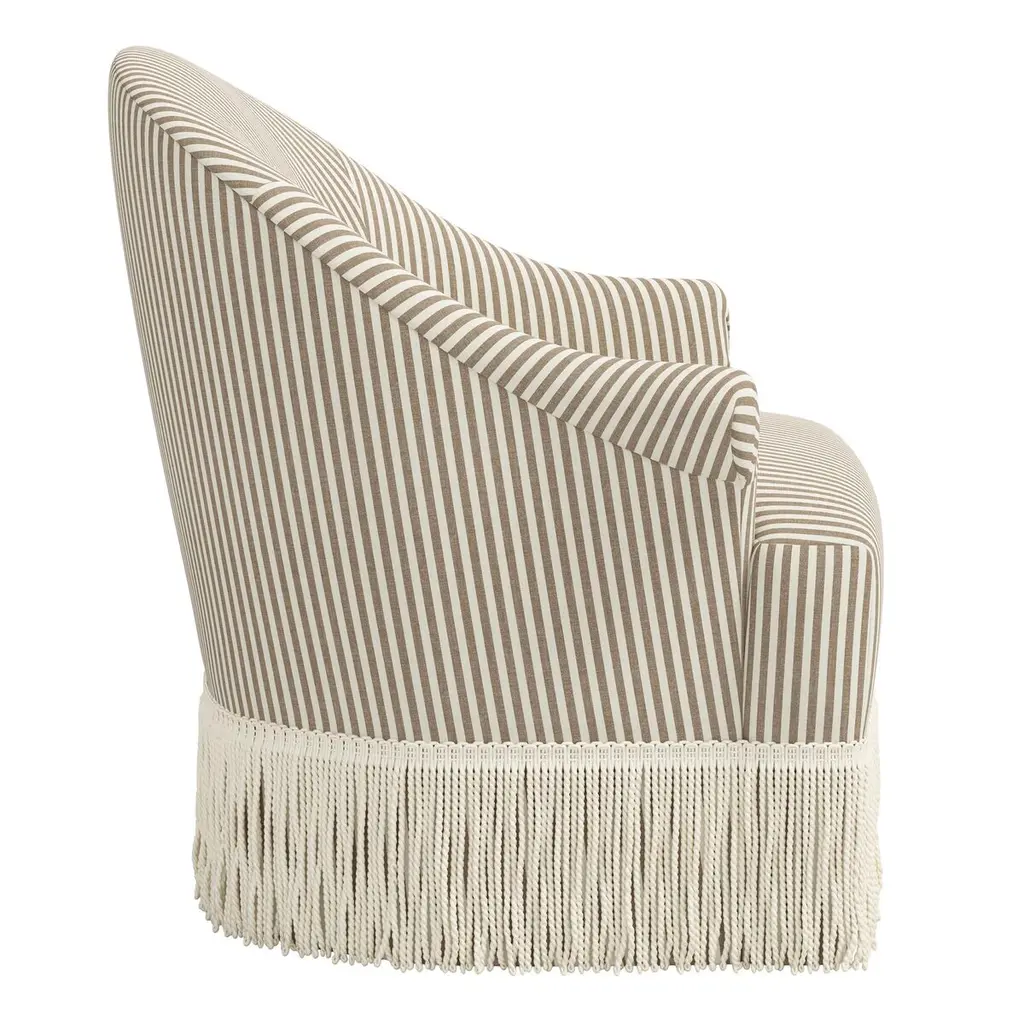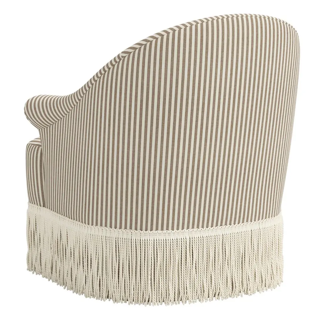 Introducing the Marie Swivel Chair, where comfort meets elegance to offer the perfect accent for any room. Whether you’re sipping tea or relaxing with a good book, this chair effortlessly complements any activity. Its delicately crafted fringe trim adds a stunning textural contrast to the upholstery. Enjoy versatility and style with every moment spent in the Marie Swivel Chair. Exclusively available from the Stoffer Home crafted by Cloth & Company collection.