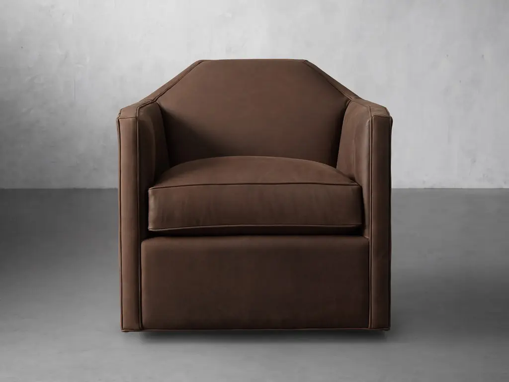 Sensationally slanted, our Marina Swivel Chair feels right at home when juxtaposed with linear silhouettes of other modern furnishings. Craftsman-built by artisans in North Carolina, this sofa boasts exaggerated angles while being comfortably upholstered in soft leather. Featuring low backs and sloped arms, Marina elevates any living space.
