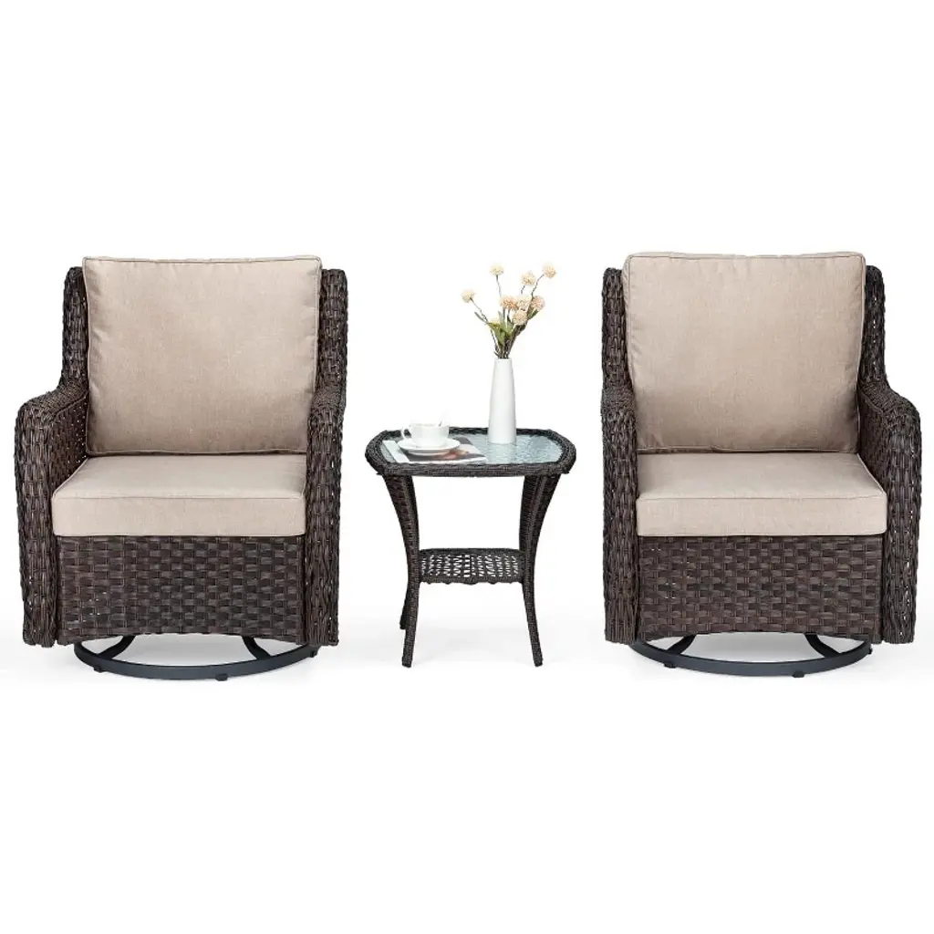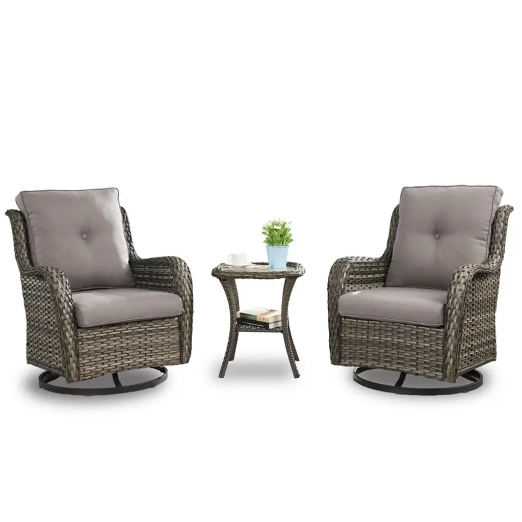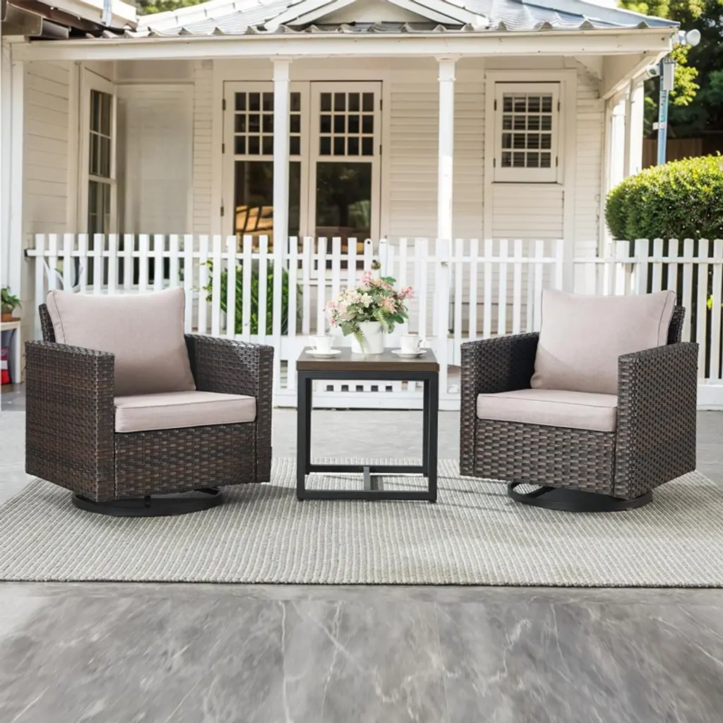 Refresh your patio space with the chic style and cozy comfort of this set of two Martha Stewart Bedford Patio Swivel Chairs. Generously padded and sturdily built, these versatile swivel patio chairs are ideal for reading al fresco, enjoying cocktails with friends, or simply relaxing. Featuring a 4.5” thick all-weather seat cushion, luxurious back cushion, and integrated armrests, these hand-woven wicker chairs will cradle you in comfort while you make the most of those gorgeous, sunny days or starlit evenings. These chairs are ideal for casual conversations or admiring every picturesque angle of your indoor-outdoor space with the integrated 360° swivel functionality. Part of our Bedford collection, these chairs pair wonderfully with the coordinating pieces allowing you to craft a custom collection that fits your entertaining needs. Setup consists of simply adding the swivel bases, with tools included and instructions, and placing the cushions while upkeep is equally hassle-free