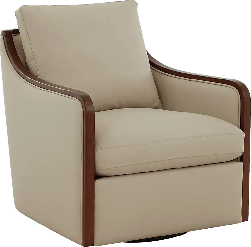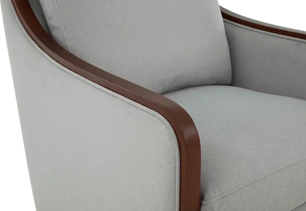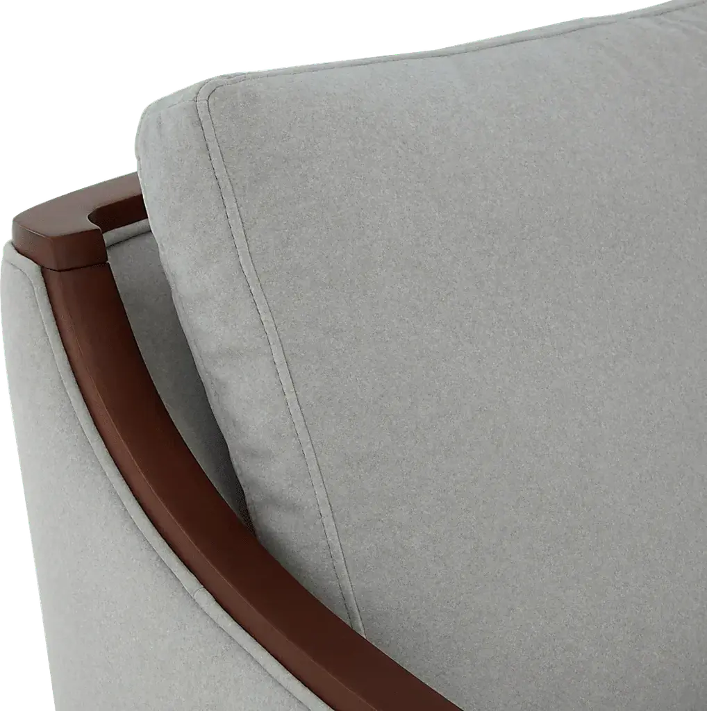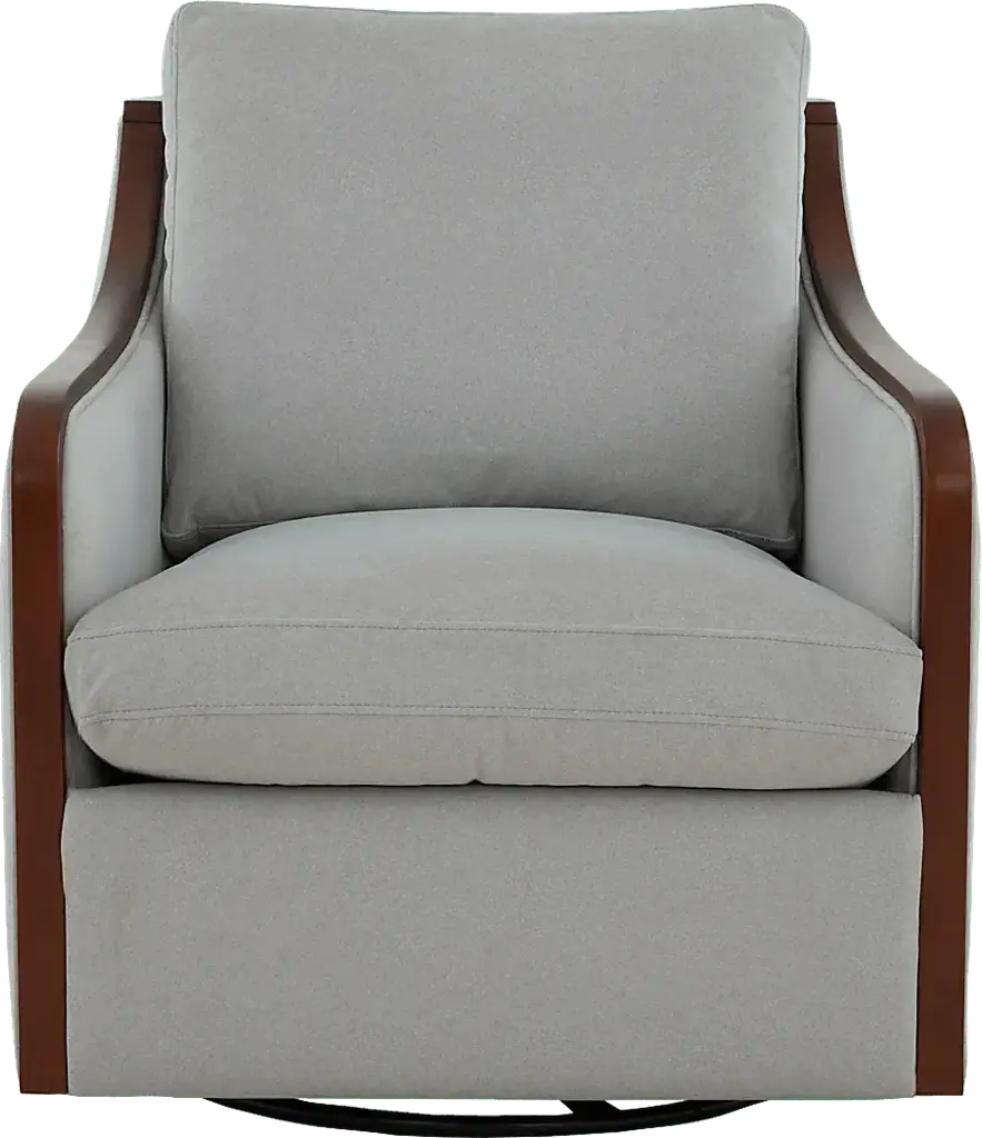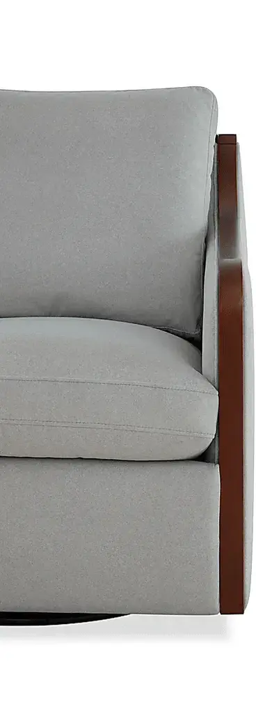 Grounded beauty and timeless design calm the mind and comfort the body as the Mattingly swivel chair's vibe flows effortlessly from its sculptural lines and warm texture. Upholstered in soft gray fabric, this traditional piece's plush seat and back cushions invite you to unwind comfortably. Gently sloped track arms framed by rich brown accent panels bring a refined structure to its soft silhouette. The smooth 360-degree swivel chair adds seamless movement, keeping you engaged while you're hosting, relaxing or simply enjoying the moment. Upholstery: 100% polyester.