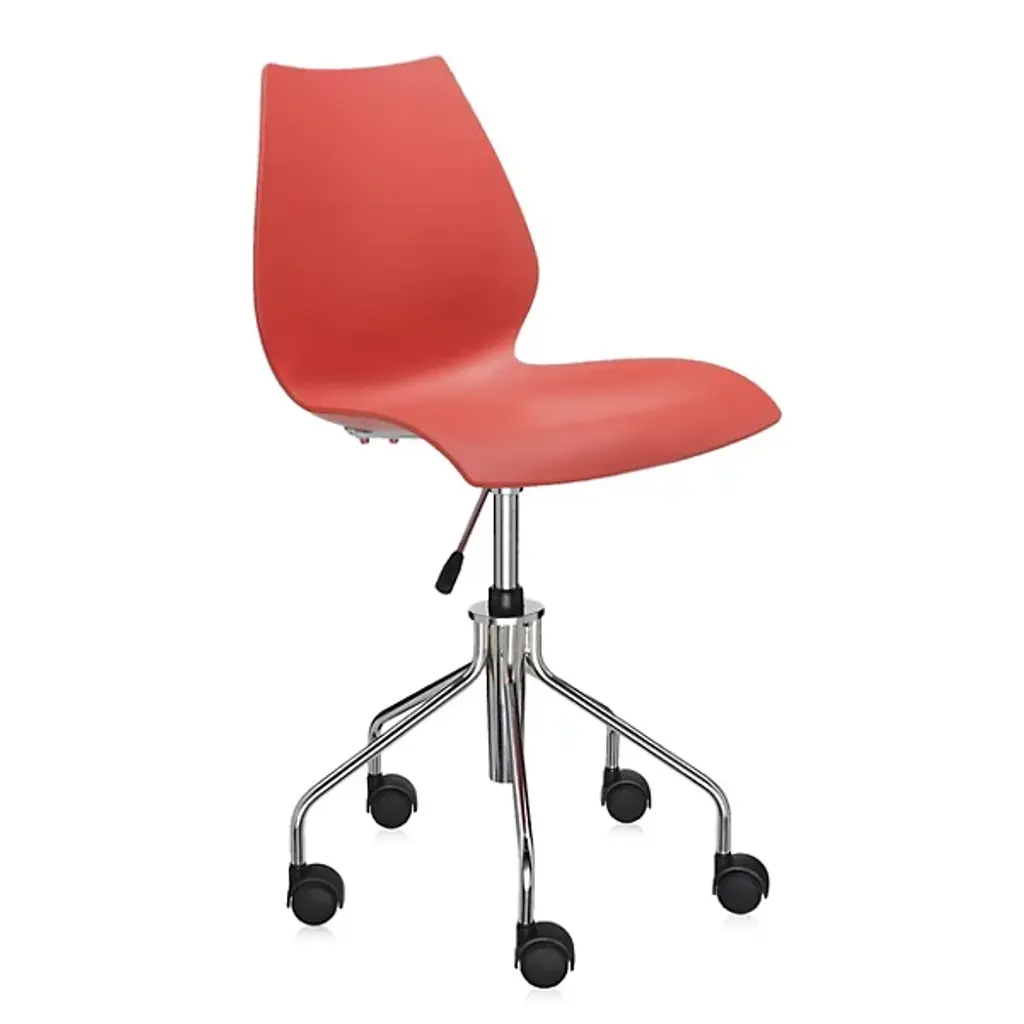 The Kartell Maui Swivel Chair Height-Adjustable designed by Vico Magistretti has elegant lines and sober colors which makes it an extremely practical and versatile chair. Available with or without a gas lift pump, Maui on wheels is the ideal solution for the informal office and home due to its lightness and comfort. The Maui Swivel Chair Height-Adjustable features a Chromed steel frame and smooth batch-dyed polypropylene arms and shell.