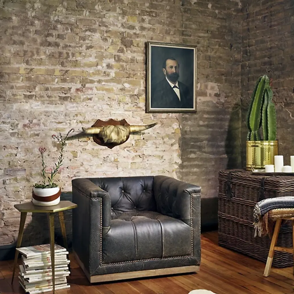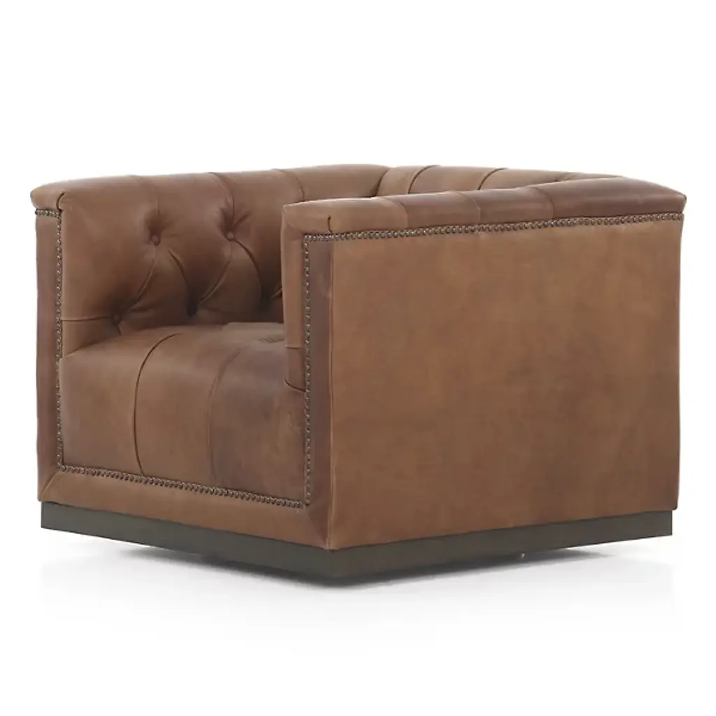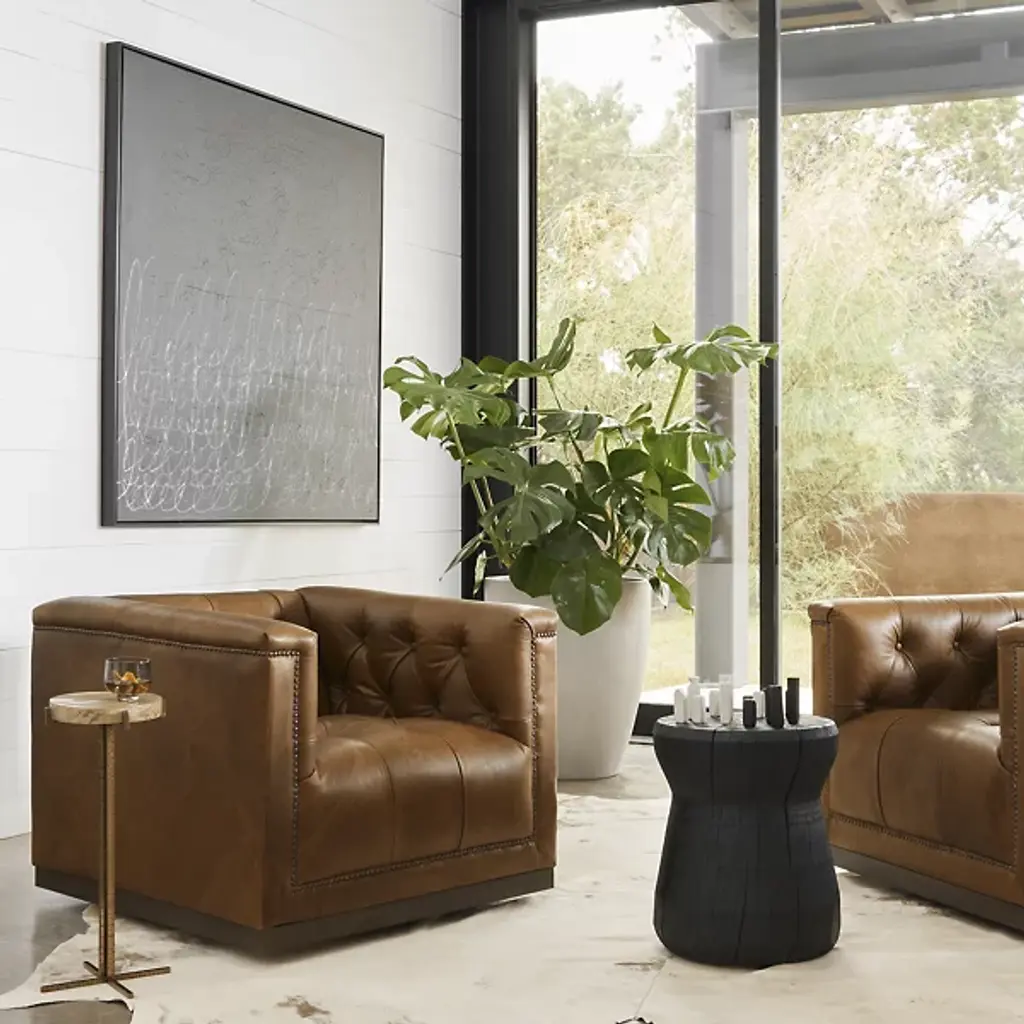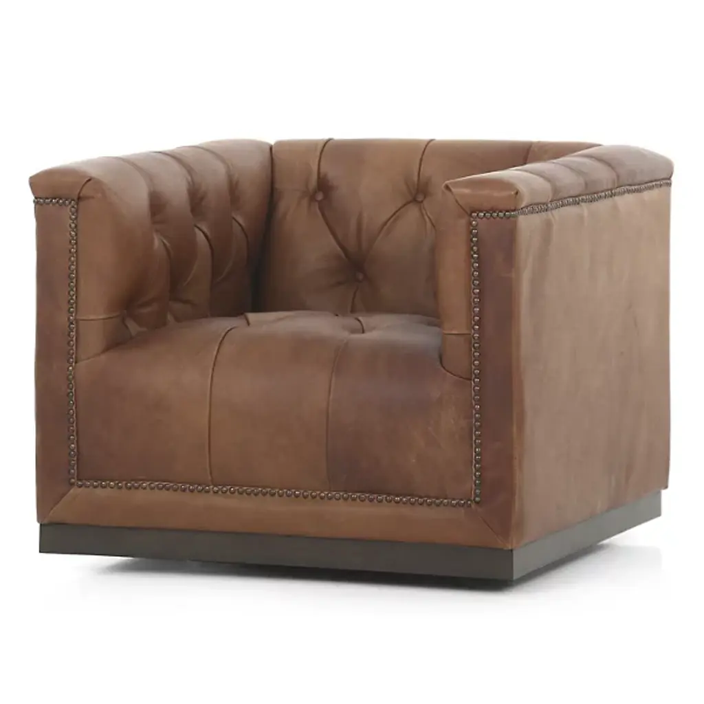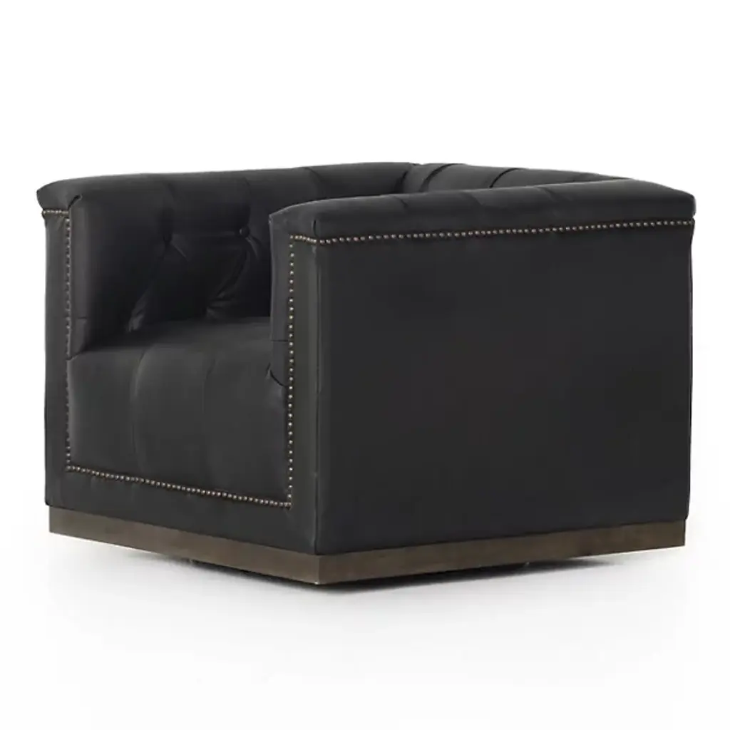 Take a seat with the intricately designed Maxx Swivel Chair by Four Hands. This chair brings a contemporary sense of style to your living space. Your chair is composed of fine fabrics for your comfort. The eye is drawn to the buttons that neatly line the Maxx Swivel Chair’s seatback. This chair has the ability to swivel so that you can change positions as you see fit. Ornamental embellishments are situated just above your furnishment’s sturdy base, ascending neatly upward.