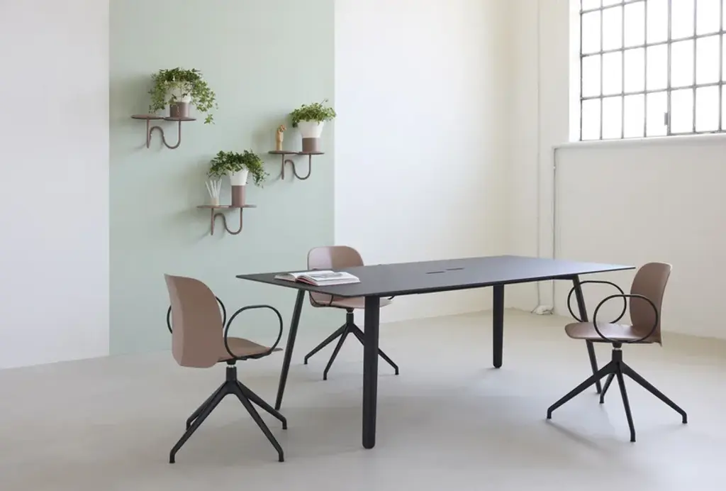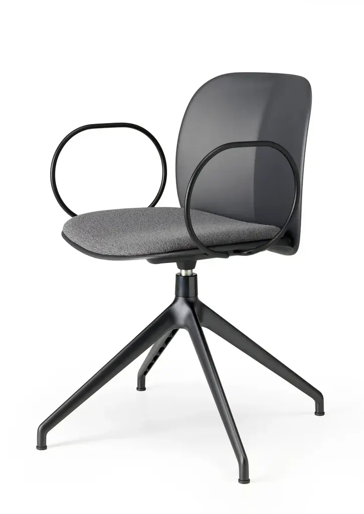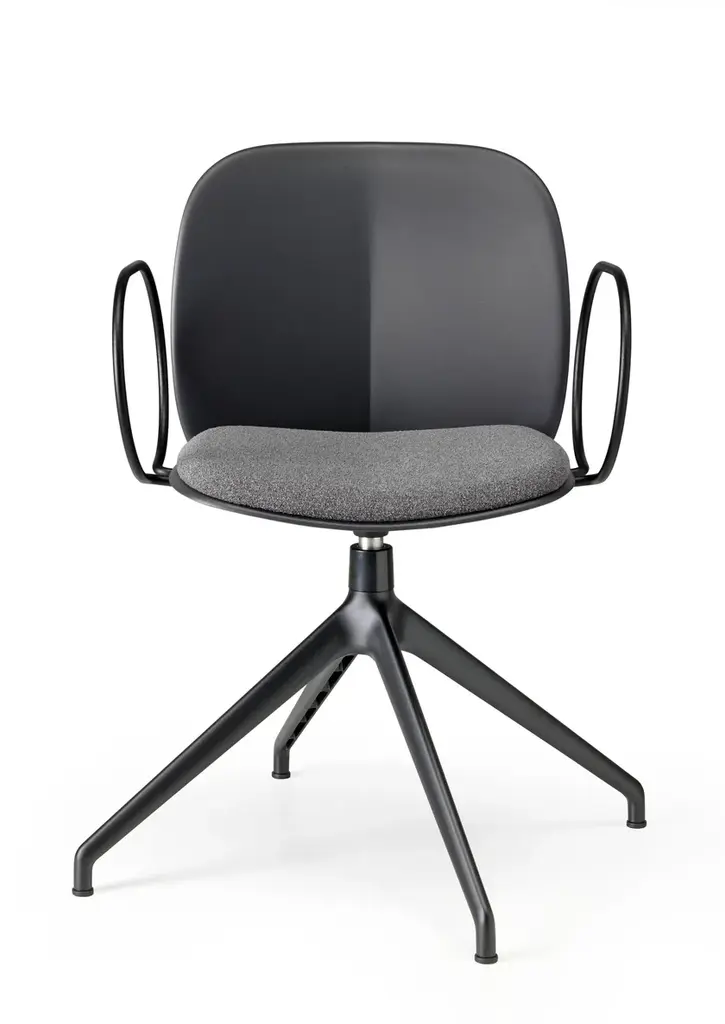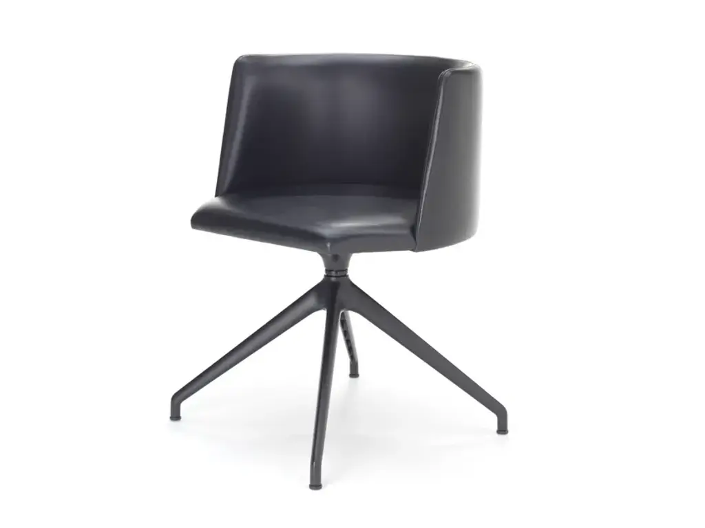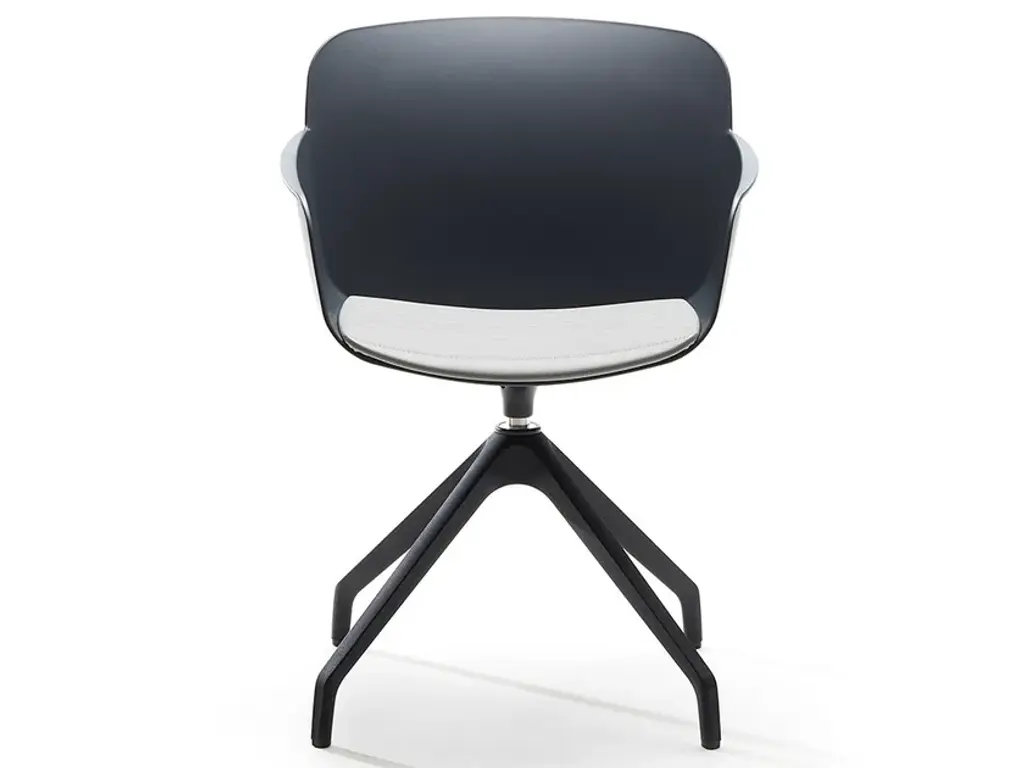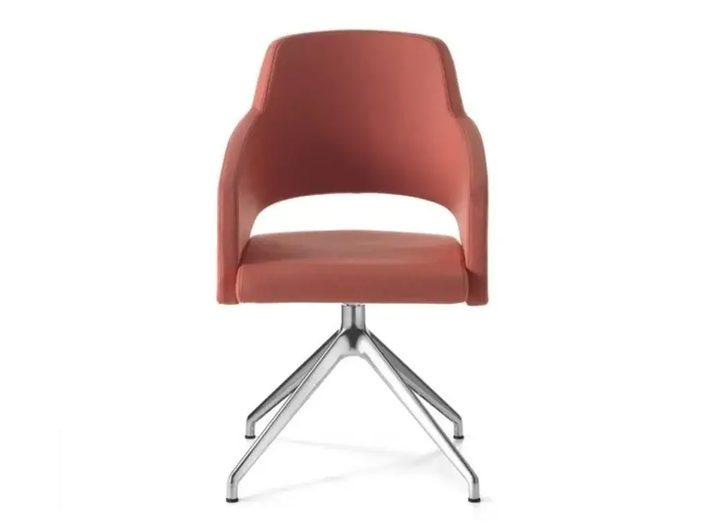 Mentha is a swivel chair made of technopolymer on a diecast aluminium trestle frame, with armrests.The Mentha chairs, the product of Archirivolto’s first collaboration with S-CAB, are instantly recognisable for their visual connection to the natural world, its harmonious and beautiful lines, and the ecological theme as a whole.The Mentha sofa is a cool, comfortable and cosy seat, just like its name suggests. The upholstered version is ideal for interiors, while the essential technopolymer version is suitable for both indoor and outdoor use.The choice of material is just as important as the form: certified recycled plastic, a progressively evolved material increasingly used by the company.The Mentha collection includes a wide range of chairs for various applications: modern seating for all types of public and private spaces, from residential to hospitality and catering. It is also at home in offices, auditoriums, conference or waiting rooms, and even educational institutions.Mentha is a seating system featuring a uniquely designed polypropylene shell available in 6 different colours, upholstered or non, and can be paired with a variety of frames, making it a highly versatile collection.