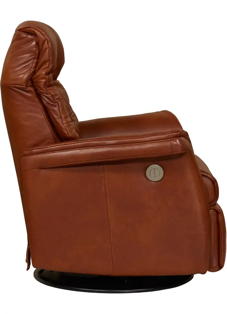 Our Metro recliner is a handsome swivel glider from our Ergo Comfort collection. This piece features 100% top-grain leather and high-density cushioning for maximum style and support. Recline with an infinite power or two-position manual option and enjoy the adjustable headrest tilt feature for a tailored relaxation experience. Sleek and comfy, this chair is available in standard or large widths to meet your needs. The Tri-Power option has power lumbar, power recline and power headrest capabilities, plus it glides and swivels on both sides. Choose the Multi-Function Power Recliner for power lumbar, power recline and power headrest functions, along with power lift!