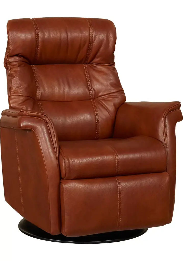 Our Metro recliner is a handsome swivel glider from our Ergo Comfort collection. This piece features 100% top-grain leather and high-density cushioning for maximum style and support. Recline with an infinite power or two-position manual option and enjoy the adjustable headrest tilt feature for a tailored relaxation experience. Sleek and comfy, this chair is available in standard or large widths to meet your needs. The Tri-Power option has power lumbar, power recline and power headrest capabilities, plus it glides and swivels on both sides. Choose the Multi-Function Power Recliner for power lumbar, power recline and power headrest functions, along with power lift!