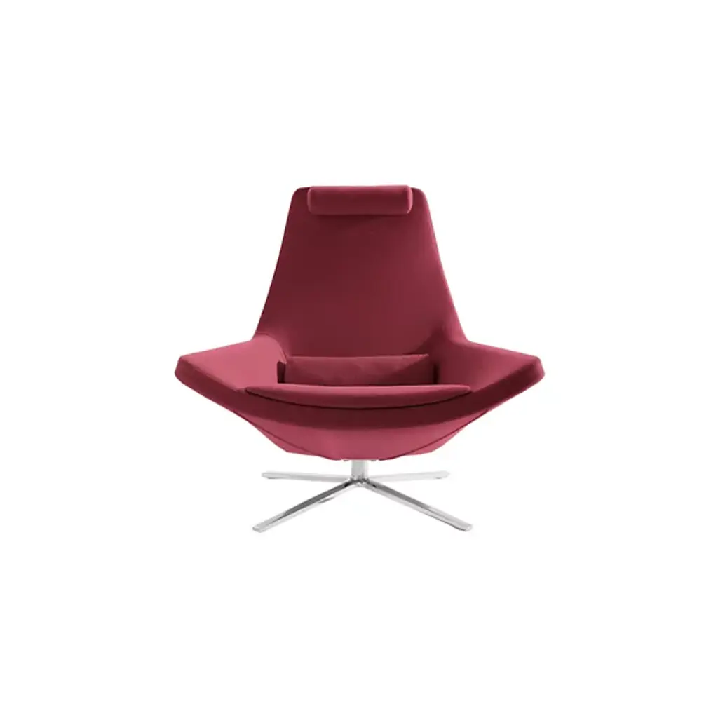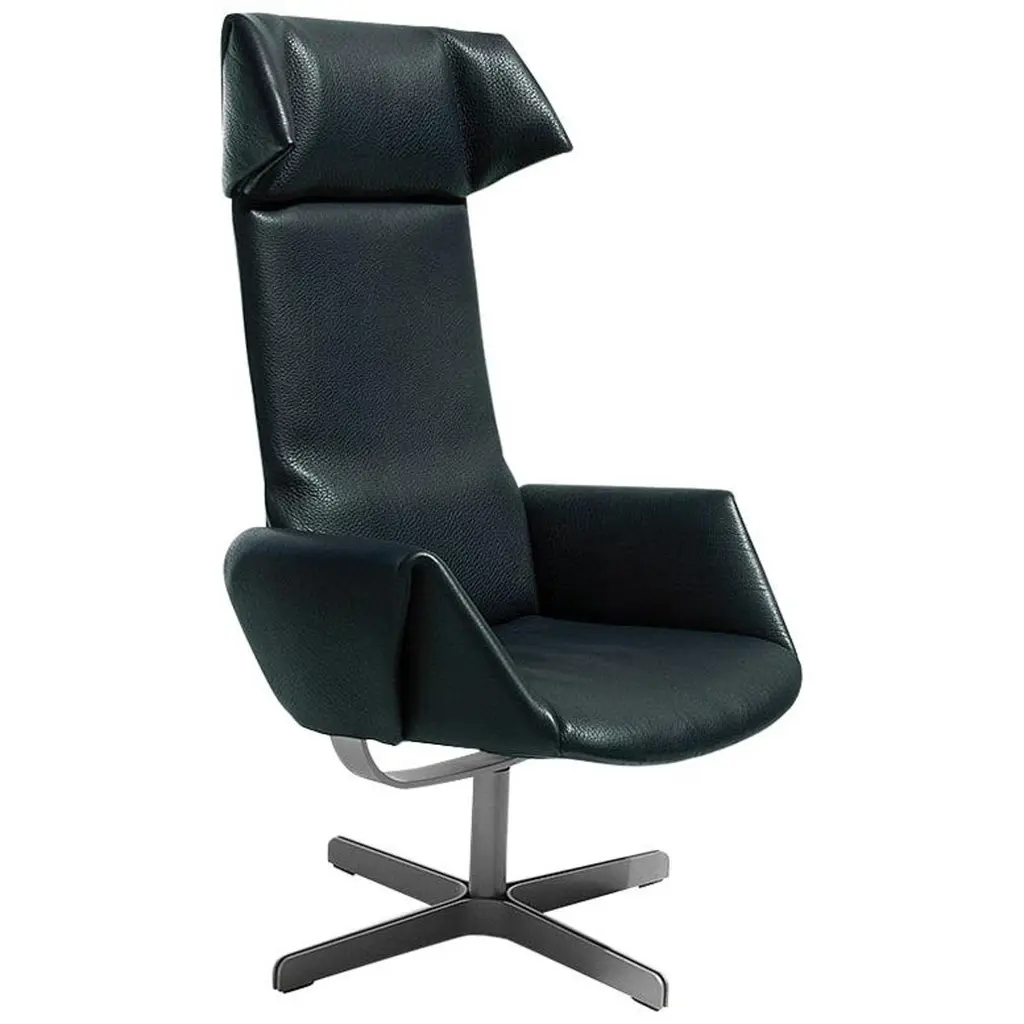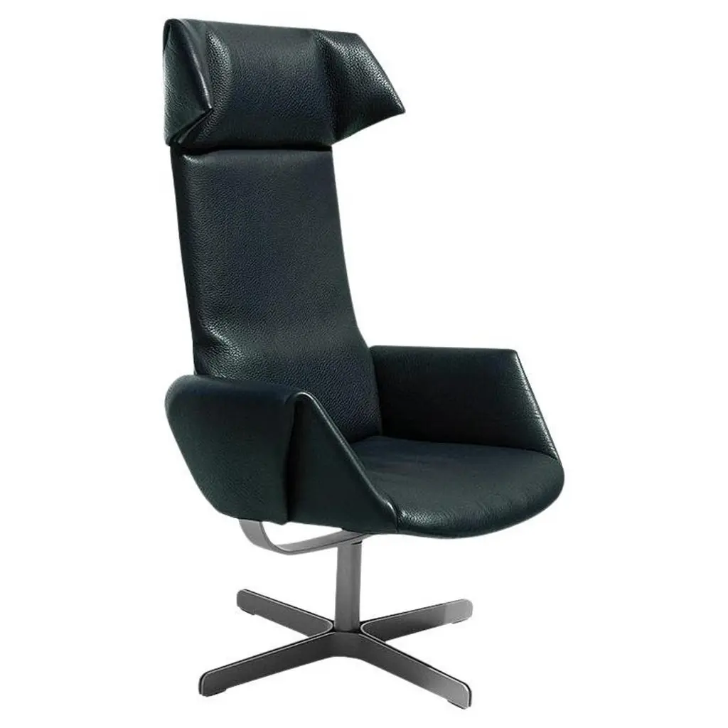 The Metropolitan Lounge Chair with Headrest from B&B Italia is a refined piece whose open composition of smooth shapes creates a comfortable seating experience. The works of designer Jeffrey Bernett balance humanity, intellect, and creativity. The armchair sits atop a versatile, swivel metal base, and the seat angles upwards at the sides to create a cradling sensation. An adjustable headrest pairs up with the tall backrest for additional comfort.