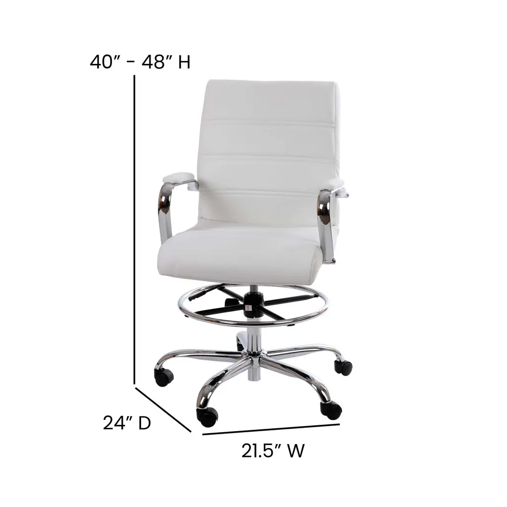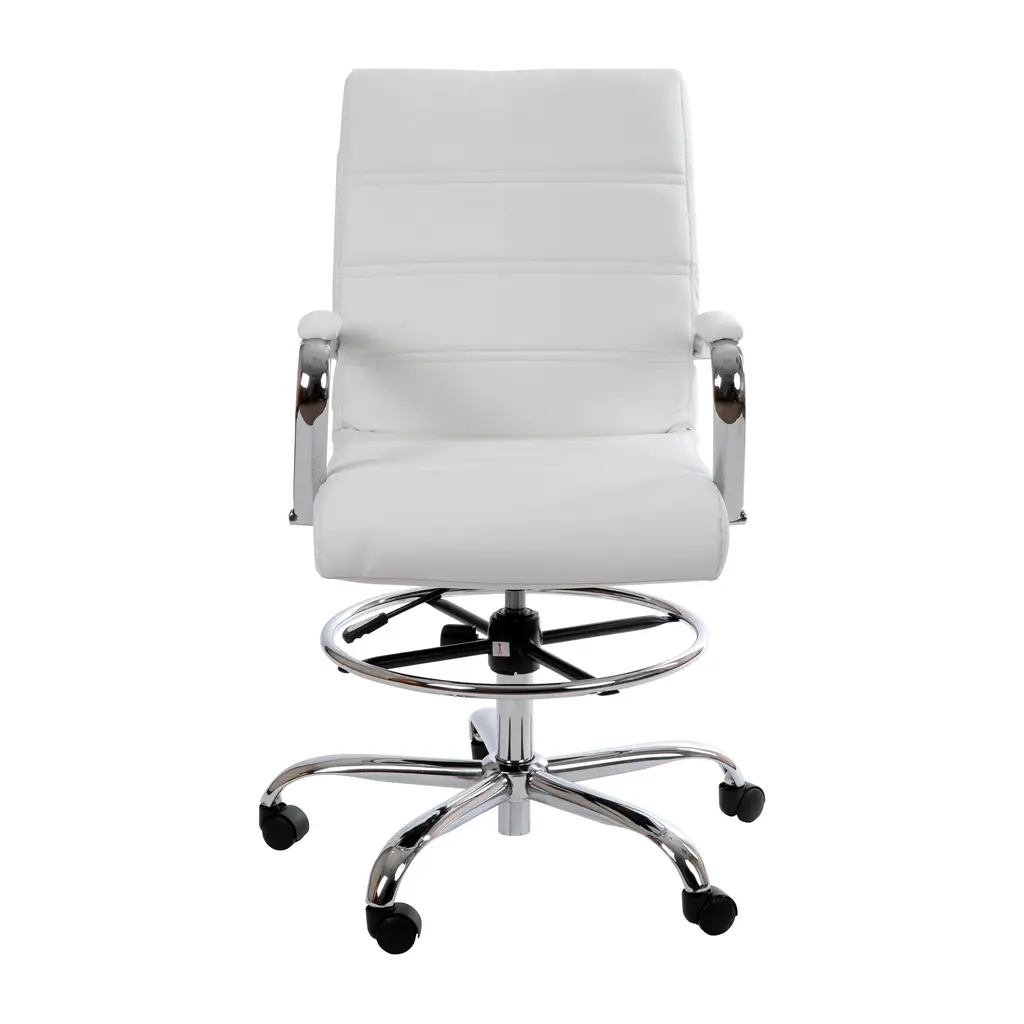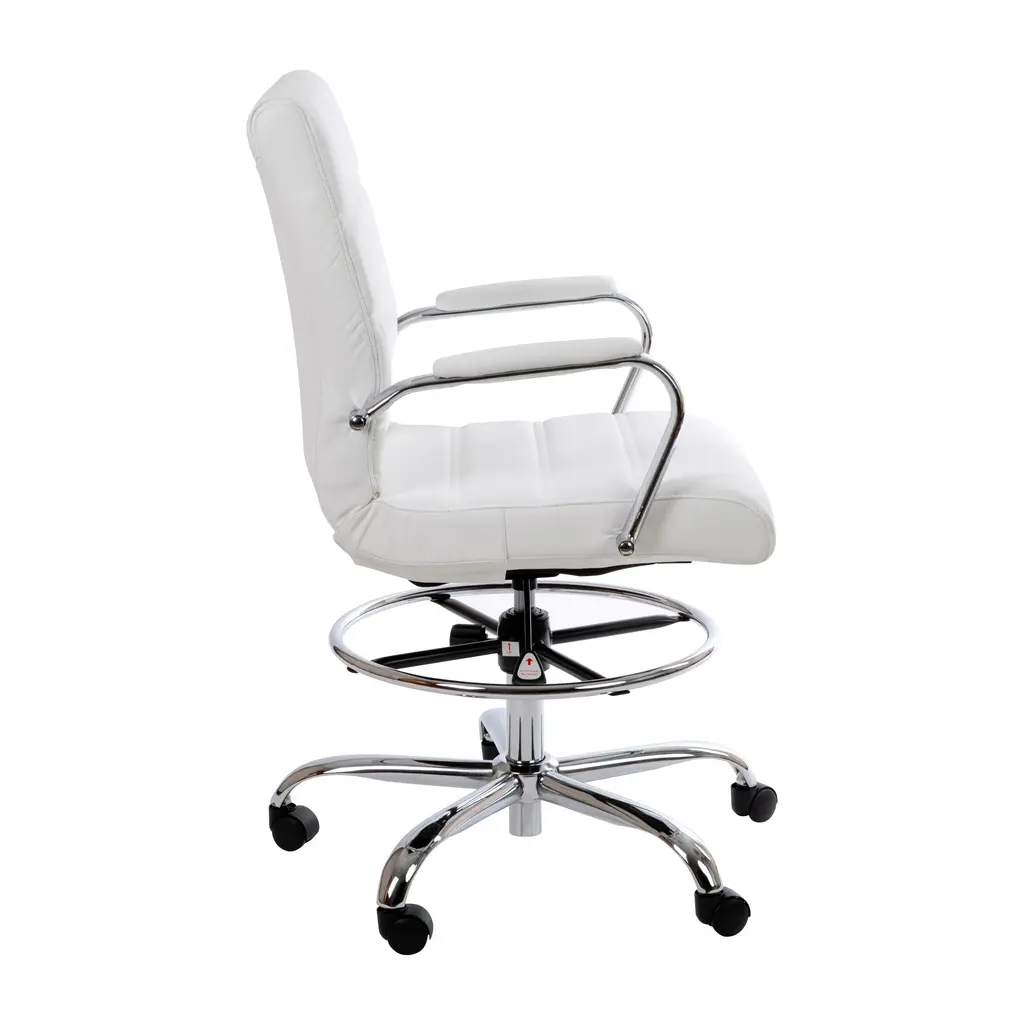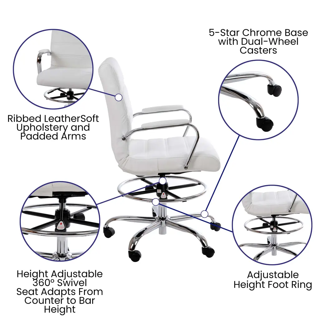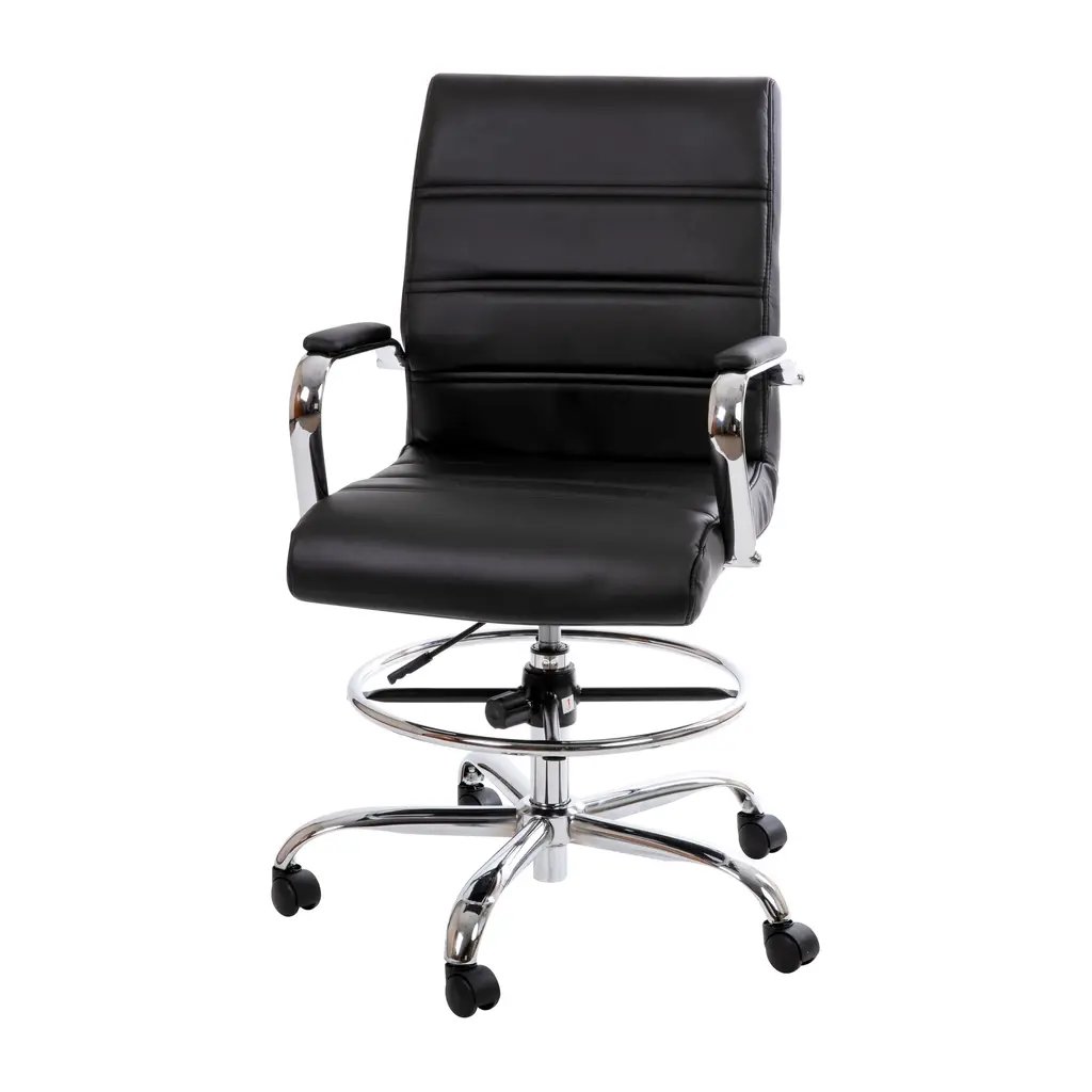 Mid-Back Leathersoft Drafting Chair With Adjustable Foot Ring And Chrome Base