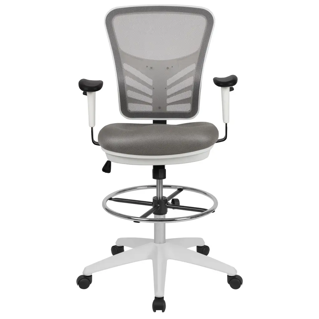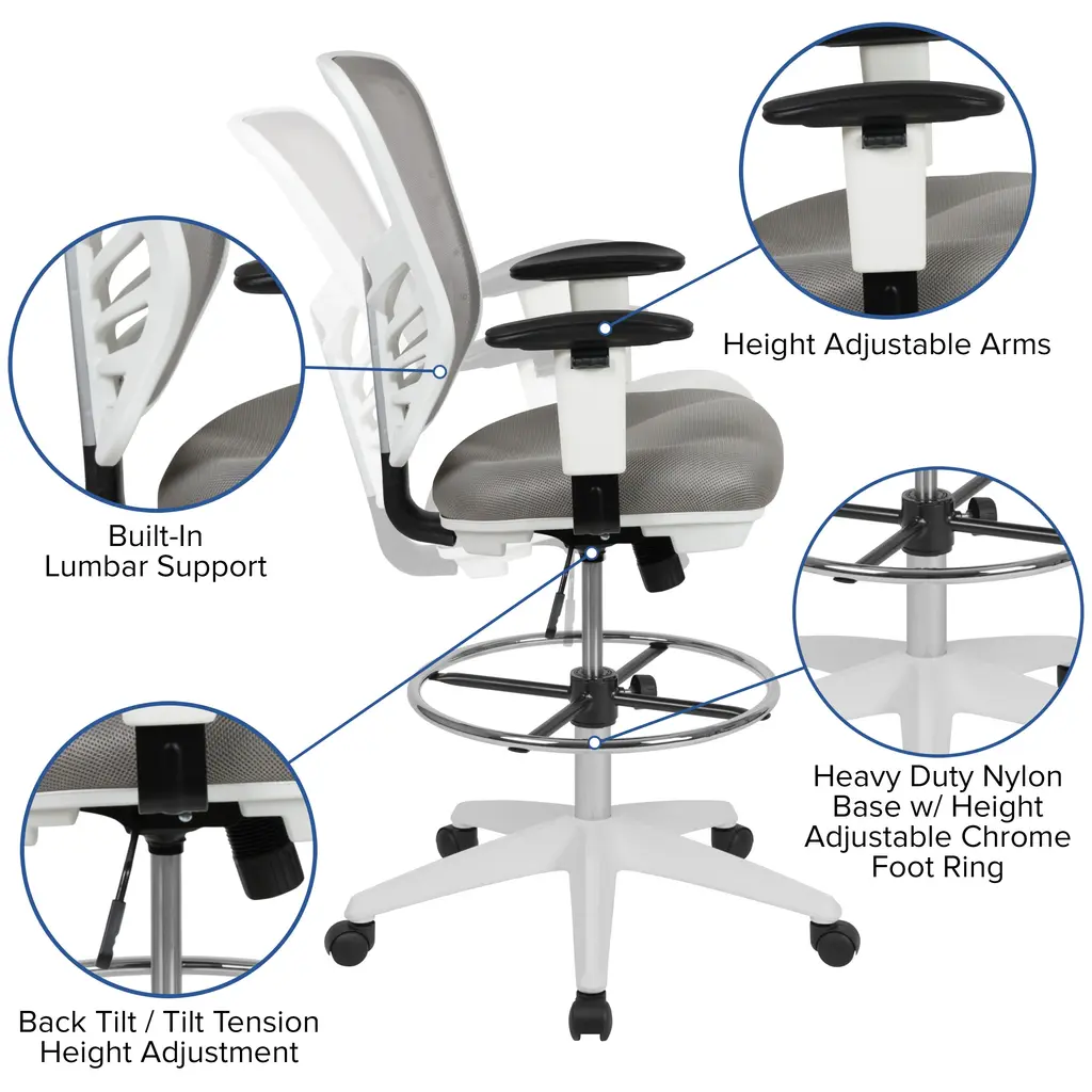 Mid-Back Mesh Ergonomic Drafting Chair With Adjustable Chrome Foot Ring, Adjustable Arms