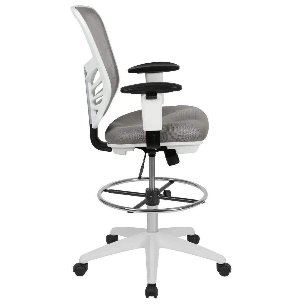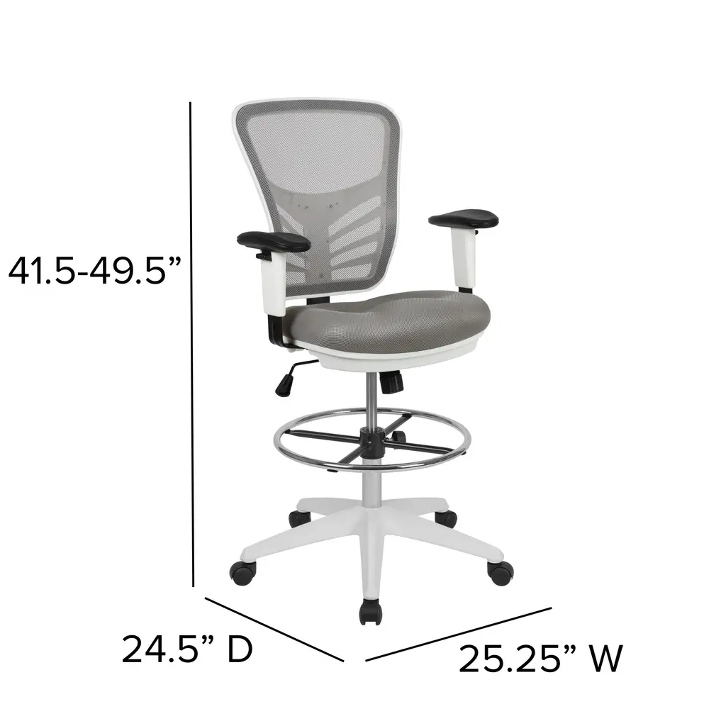 Mid-Back Mesh Ergonomic Drafting Chair With Adjustable Chrome Foot Ring, Adjustable Arms