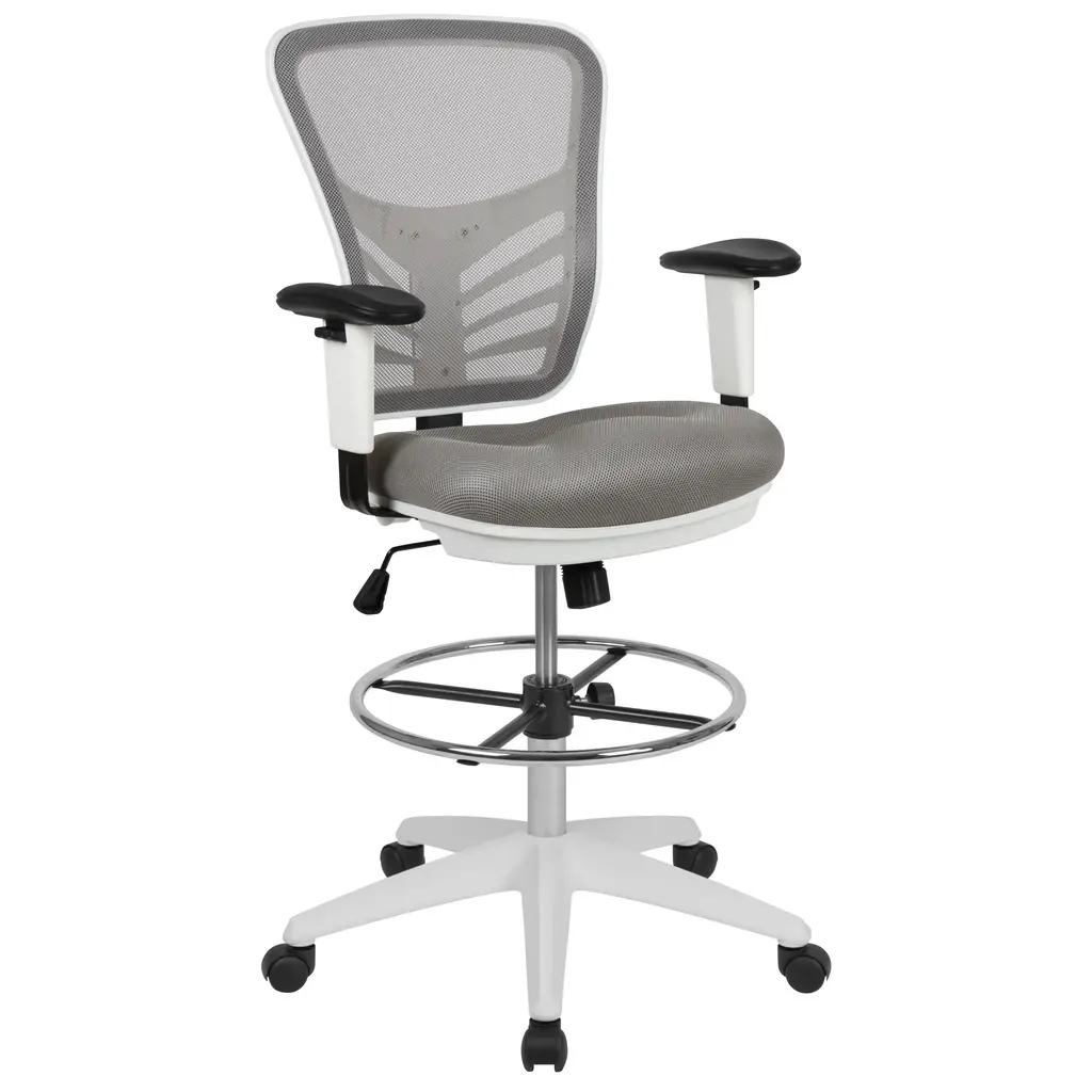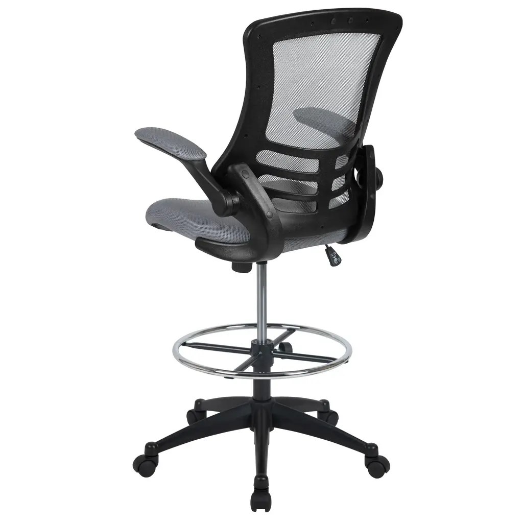 Mid-Back Mesh Ergonomic Drafting Chair With Adjustable Foot Ring And Flip-Up Arms