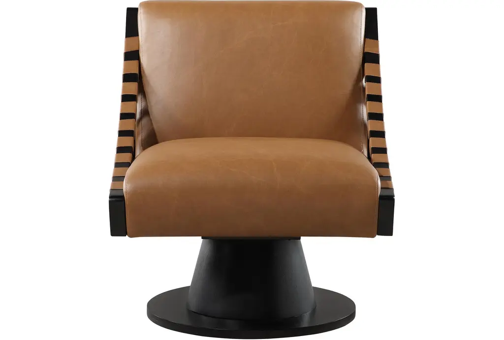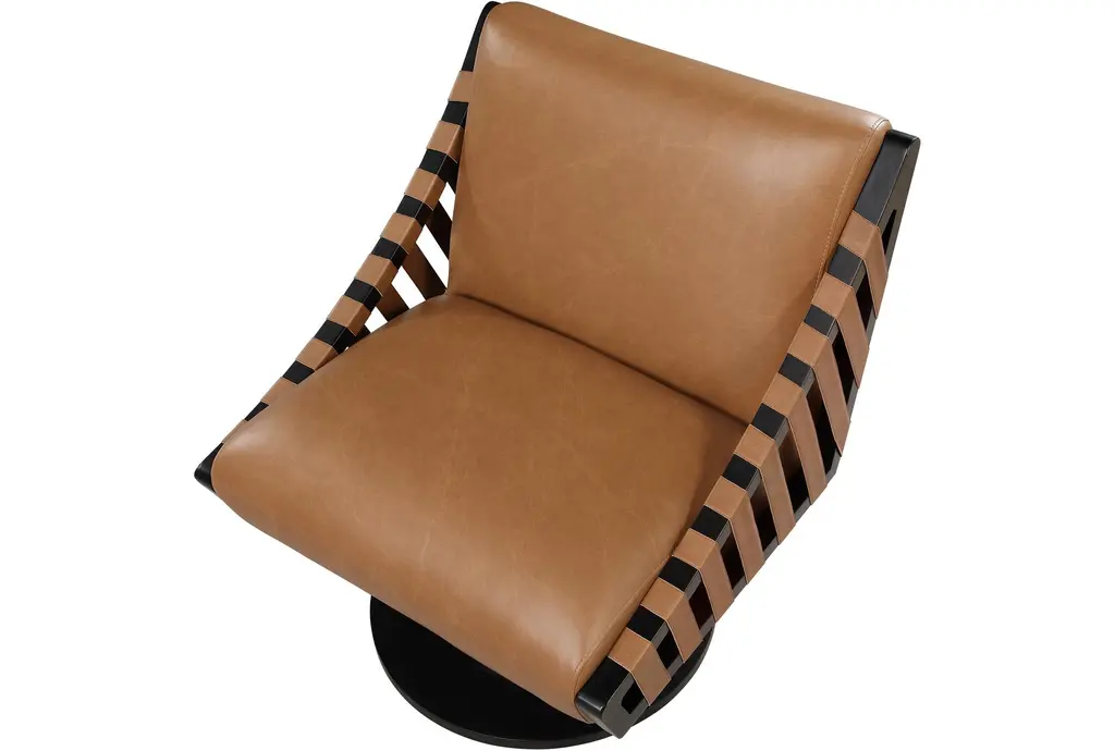 Millwin Cognac Brown Vegan Leather Swivel Accent Chair With Black Finish