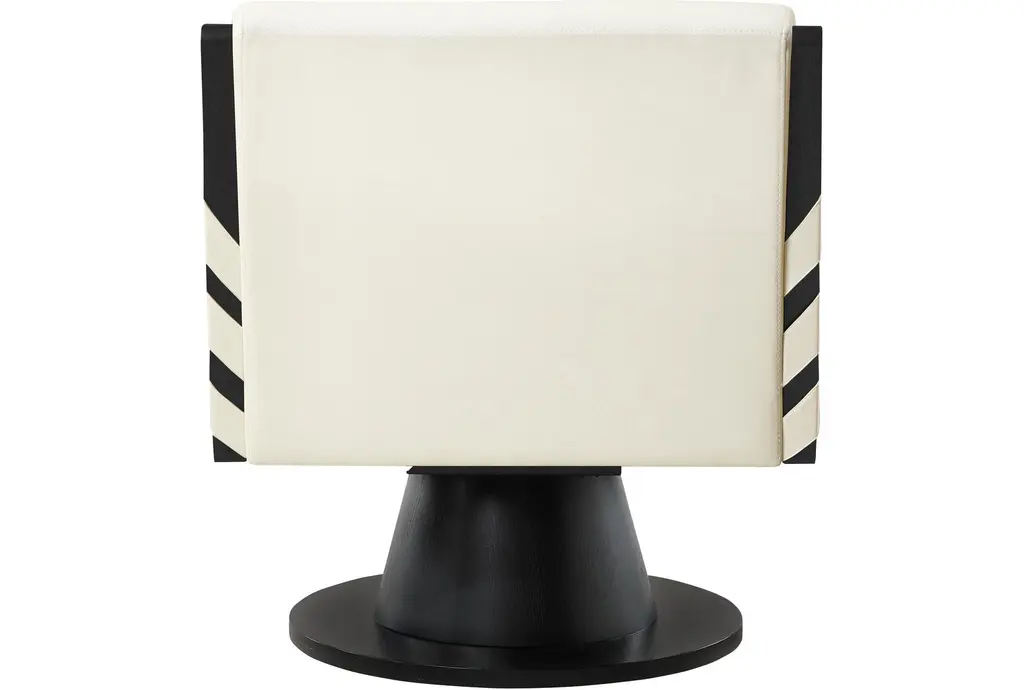 Millwin Cream White Vegan Leather Swivel Accent Chair Black Finish | Fabric