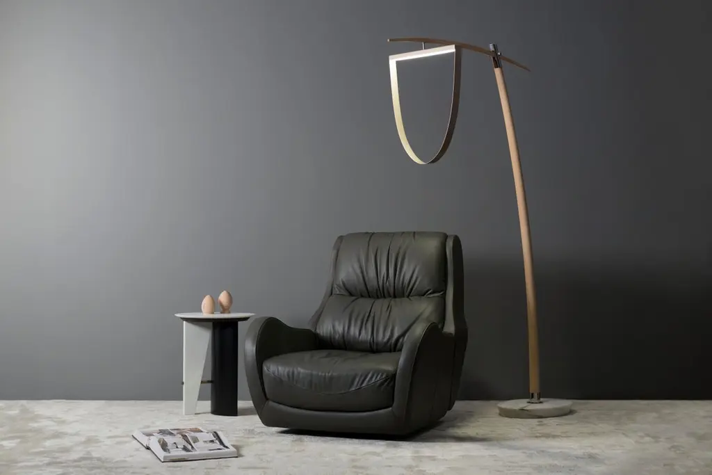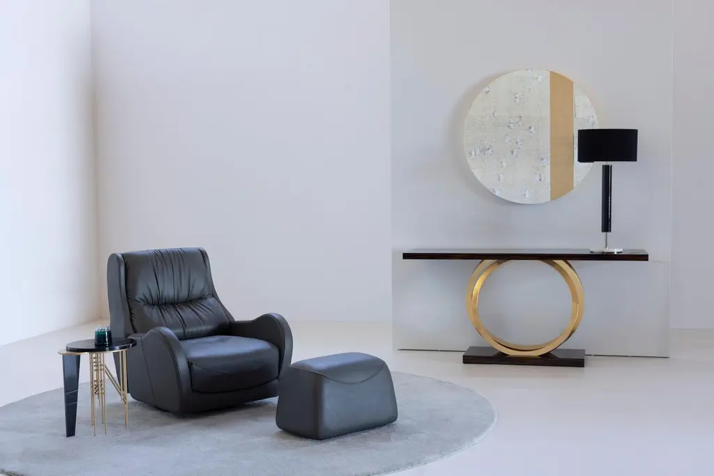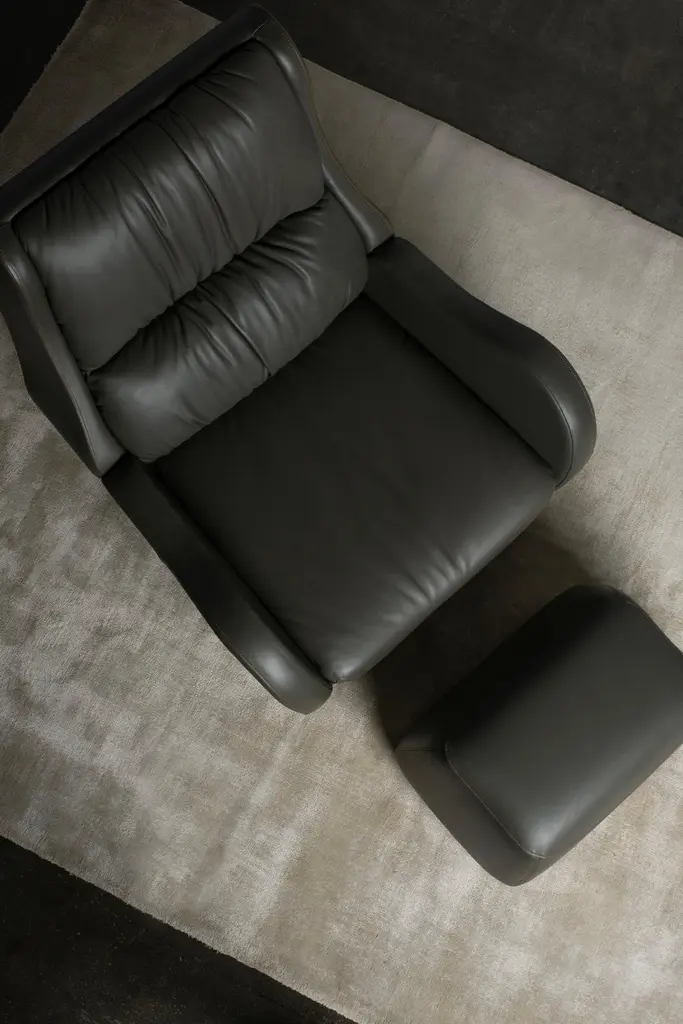 Capelinhos Swivel Lounge Chair with Footrest, Contemporary Collection, Handcrafted in Portugal - Europe by Greenapple.The Capelinhos leather lounge chair stands as a testament to timeless comfort. Much like a fine wine, Capelinhos ages gracefully with its leather upholstery crafted to enhance the modern interior design and grow richer in comfort as time unfolds. An invitation to unwind and embrace moments of relaxation, this leather lounge chair is a synthesis of style and relaxation.Capelinhos Lounge Chair with Footrest Material CodesFI007 Black lacquer; satin finishM104101 Green premium Italian leatherHandcrafted in Portugal - Europe by GreenappleUnique by design, Crafted by peopleGreenapple transforms contemporary spaces into exclusive narratives of design and craftsmanship. From custom-made furniture to bespoke interiors, each creation is a timeless work of art, shaped by master artisans who honor centuries-old techniques.Founded in 2005 by Sérgio Rebola and Rute Martins, Greenapple has earned global recognition among high-end clientele and leading design firms. While Rute designs each unique piece, Sérgio ensures uncompromising quality from design to production and from production to your home. We provide a seamless experience, offering short production lead times, worldwide delivery within 7 to 10 days, and white-glove service upon request.For U.S. clients, we can handle customs clearance, and offer white-glove service as well upon request.Armchair, Accent Chair, Easy Chair, Wing Chair, Club Chair