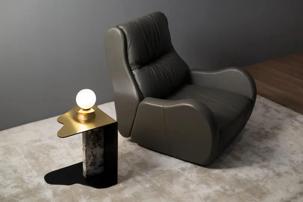 Modern Capelinhos Lounge Chair, Swivel, Leather, Handmade Portugal By Greenapple
