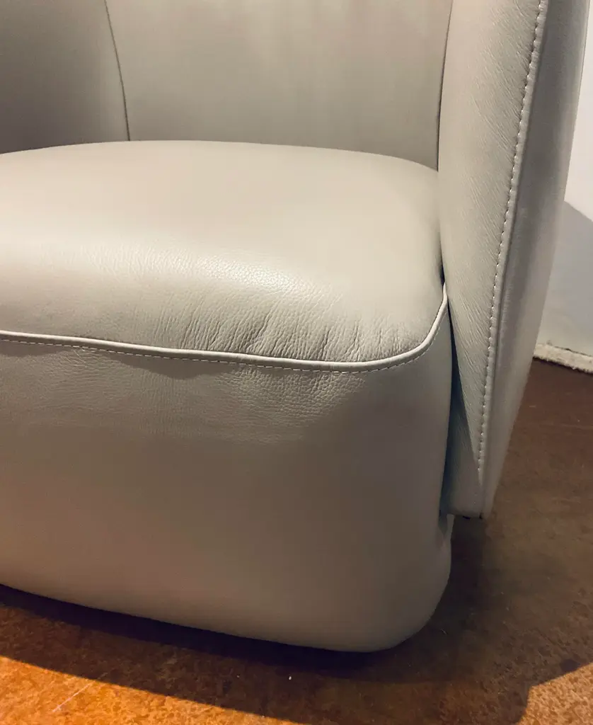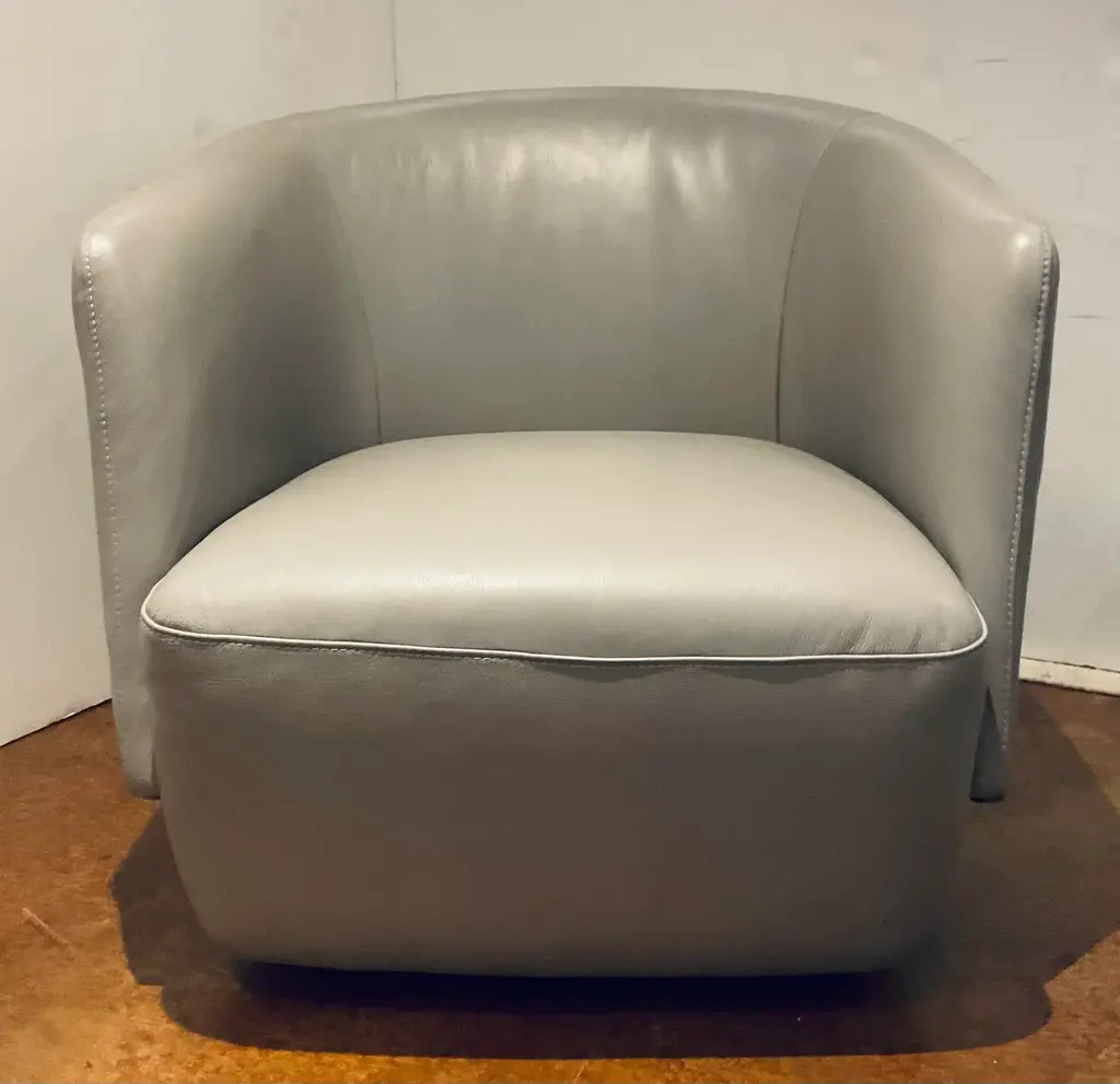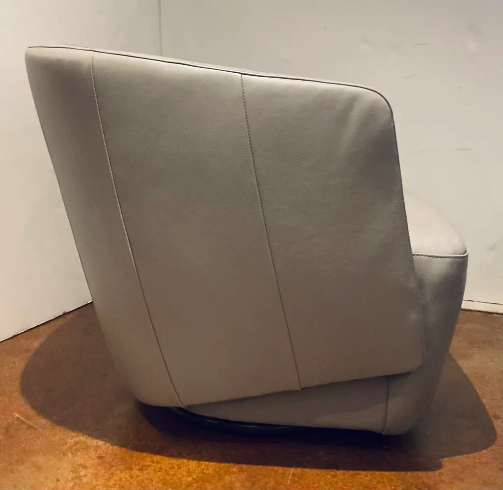 Stylish Modern Light Gray Leather Swivel Chair, showroom floor sample