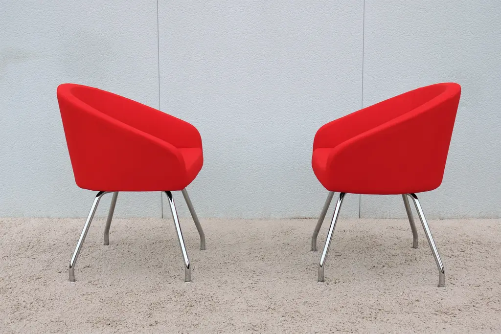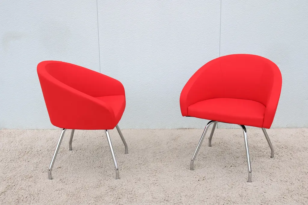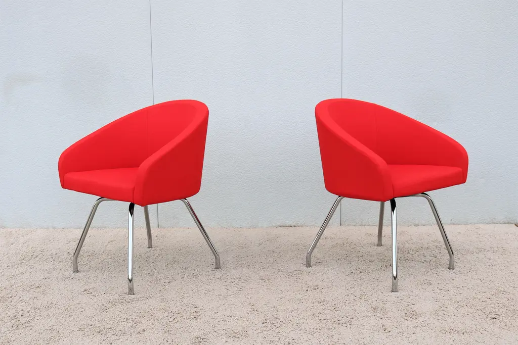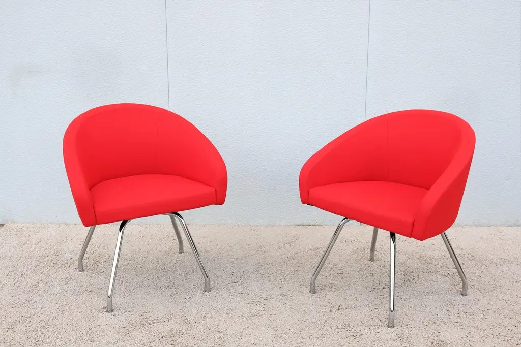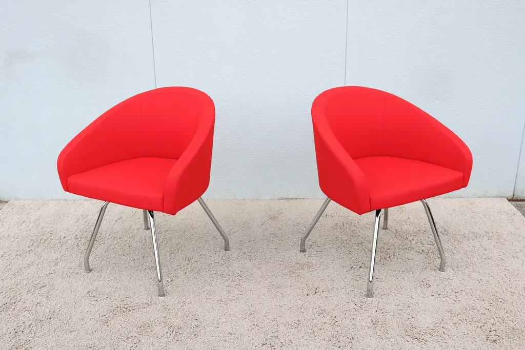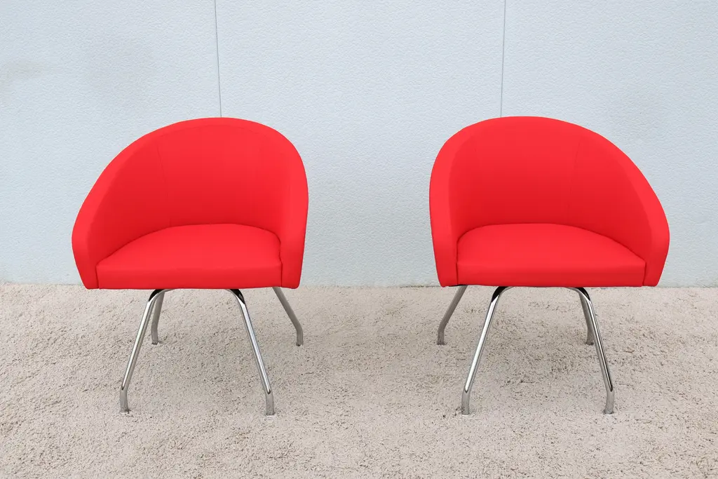 Modern Stanley Felderman For Haworth Collaborate Red Swivel Side Chairs - A Pair