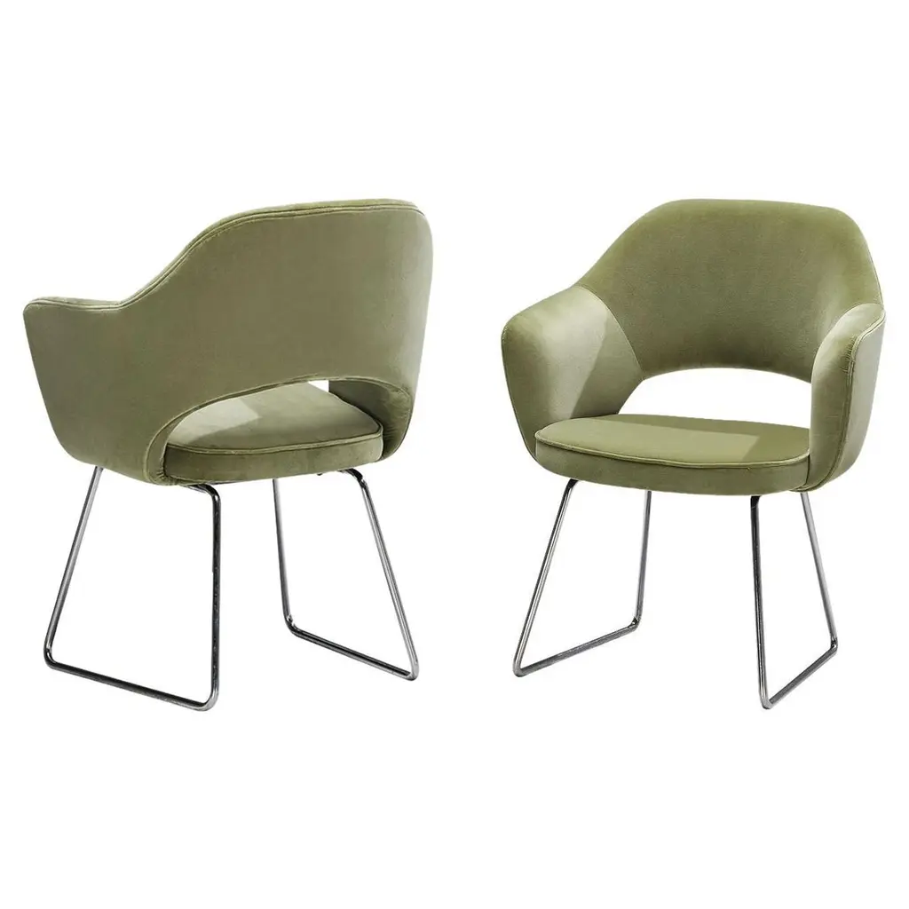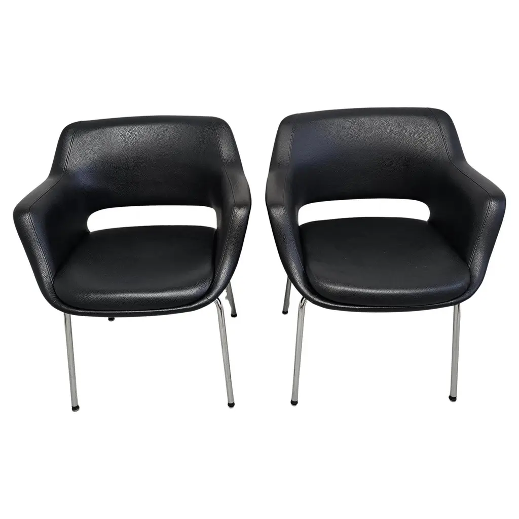 These classic and elegant Collaborate swivel side chairs combine comfort, performance, and clean lines. Features a 180-degree self-returning swivel to shift various postures quickly and lumbar support for exceptional comfort. Great chairs for your Home or Office use, can be used as Dining or Conference or Guest chairs, Fits seamlessly into any environment and among Mid-Century classic designs. Please note I have 10 chairs available, selling them in set of 2 chairs (the price listed is for a pair of two chairs) Description: Fabric color: Red Steel frame and panels are covered with foam and upholstered Four steel angled tubular legs mirror polished chrome plated with pivot and height adjustable hard glides Authentic chairs have the manufacturer labels attached underneath Design by: Stanley Felderman and Nancy Keatinge Design year: 2011 Year Manufactured: 2013 Model: Collaborate # SGG-22-H Greenguard Gold certified Manufacturer: Haworth Made in USA Dimensions: Height 30.5" x Width 25.5" x Depth 22" x Seat height 18" x Seat width 20" x Seat depth 17.75" Brand New these chairs retail for approximately $ 2500.00+ each Recommend checking Haworth website for the quality and reputation of the brand!