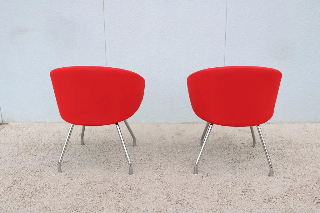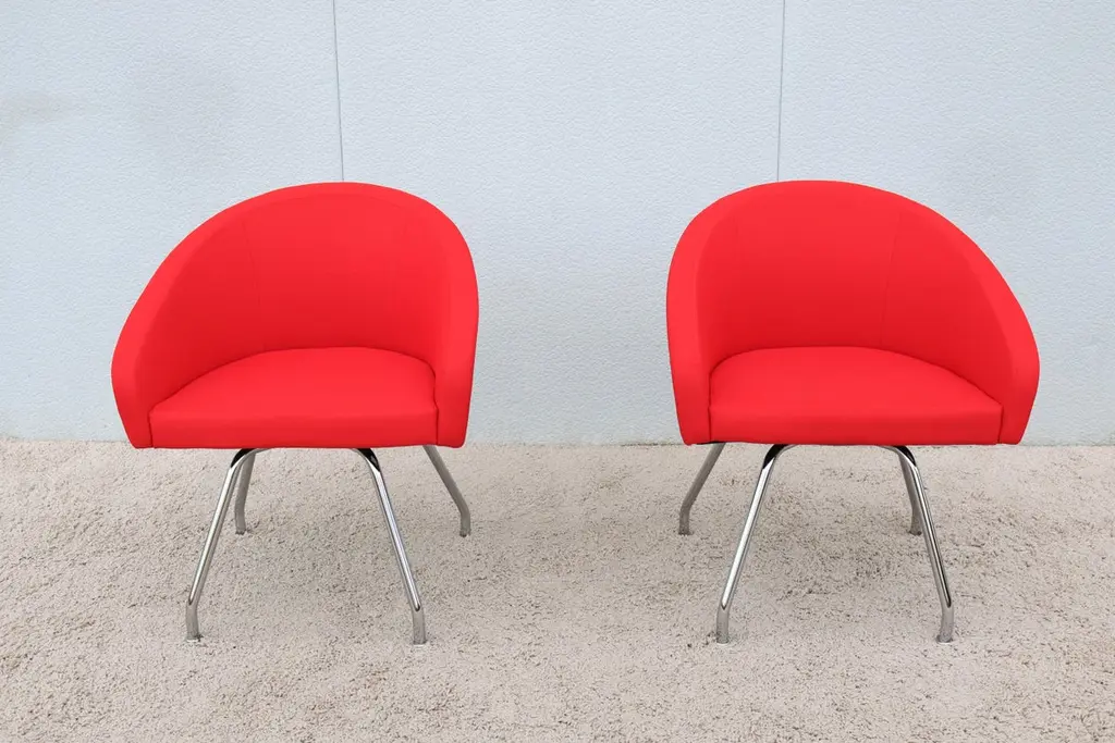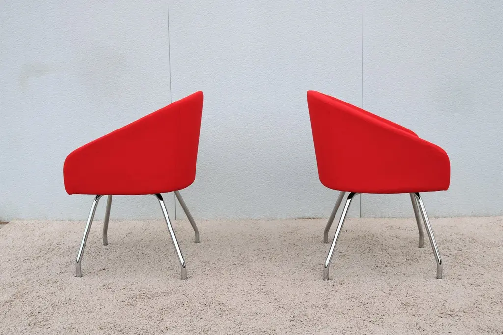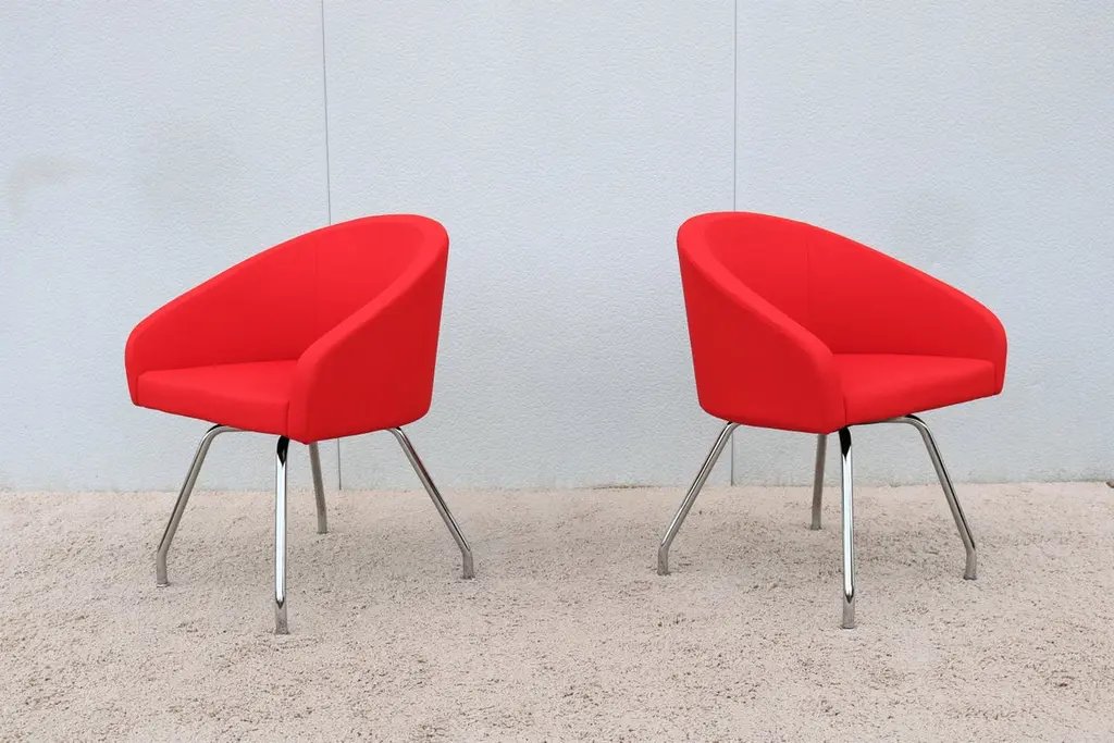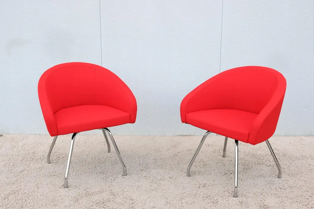 Modern Stanley Felderman For Haworth Collaborate Red Swivel Side Chairs, Pair
