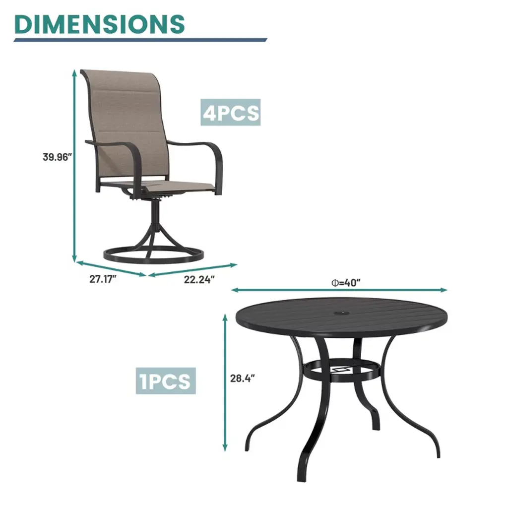 Mondawe 5-piece Steel Textiliene Swivel Chair Round Table Patio Dining Set With Umbrella Hole