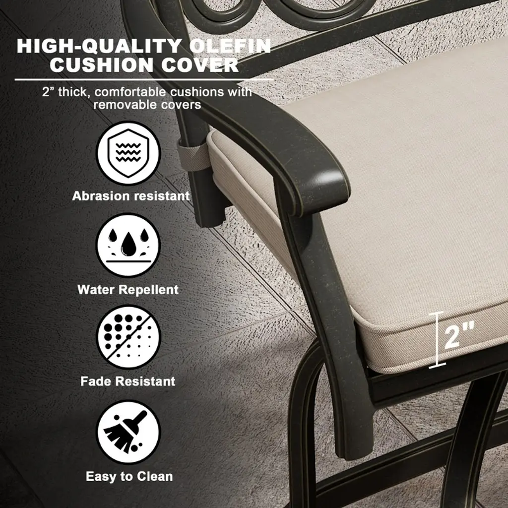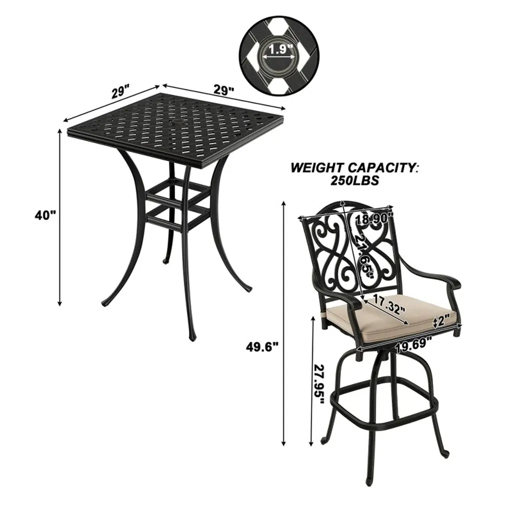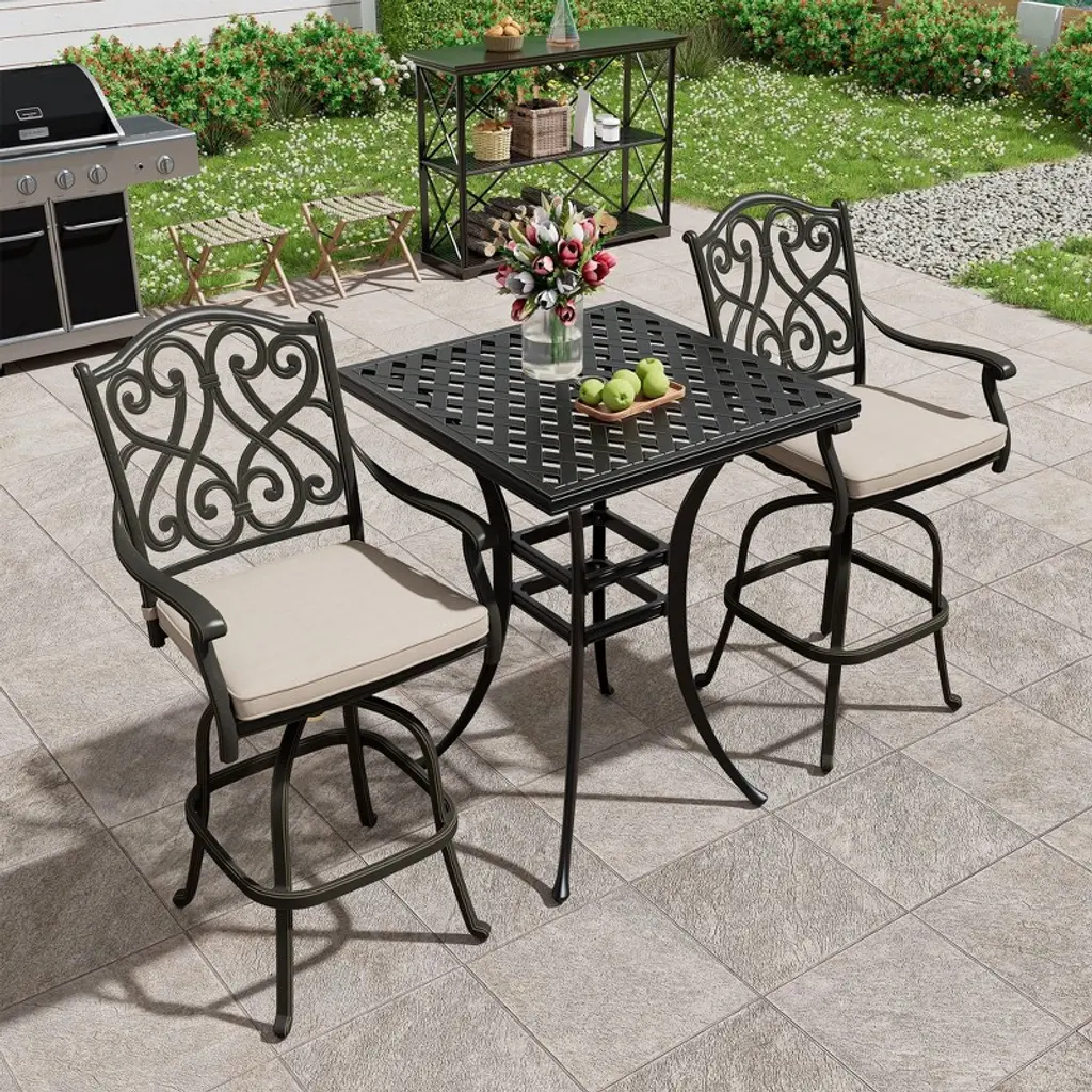 Mondawe Black 3-piece Cast Aluminum Patio Outdoor Bistro Set With 2 High Bar Swivel Chairs, Square Table (Seat 2), Beige