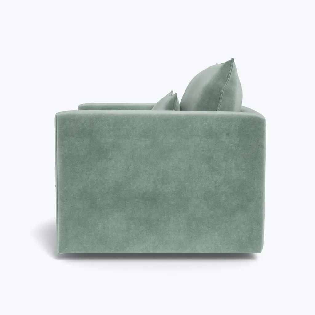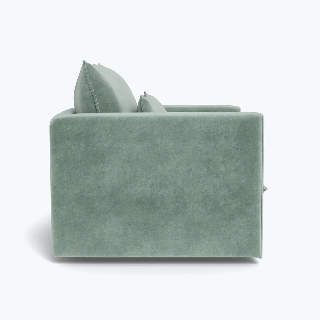 The Montauk Swivel Chair, exclusively from ABC Carpet & Home, blends modern design with luxurious comfort, making it an ideal addition to any living space. Whether placed in a cozy reading nook, bedroom, or as part of a larger seating arrangement, this chair's smooth swivel function offers flexibility while maintaining an air of relaxed elegance.Built with a sustainably sourced Goodwood frame, the Montauk Swivel Chair is designed with eco-conscious craftsmanship that ensures long-lasting durability. The cushion core is made from eco-friendly foam, partially derived from sustainable, plant-based materials, and is wrapped in a plush blend of feather and down. This combination creates a cloud-like seating experience that invites you to unwind and relax in style. Its high back offers exceptional support, making the chair perfect for lounging, reading, or enjoying a moment of calm.The Montauk Swivel Chair's modern floating base enhances its light, contemporary aesthetic, while elegant flange detailing adds a refined touch. Its effortless swivel function allows you to easily adjust your view or position, making it versatile enough for any room.With over 80+ custom fabric options—including cottons, linens, blends, and performance fabrics—you can personalize the Montauk Swivel Chair to match your home's unique aesthetic. Our design specialists are available in-store to guide you through the process, helping you create a piece that reflects your personal style and elevates your living space.Handmade in the USA, the Montauk Swivel Chair combines premium craftsmanship with versatile design. Pair it with other pieces from the Montauk collection—such as the modular sectional, armless chairs, ottoman, or sleeper—to create a cohesive and inviting living area that’s tailored to your lifestyle. Whether used as a statement piece or part of a larger setup, the Montauk Swivel Chair brings a touch of modern luxury to any home.