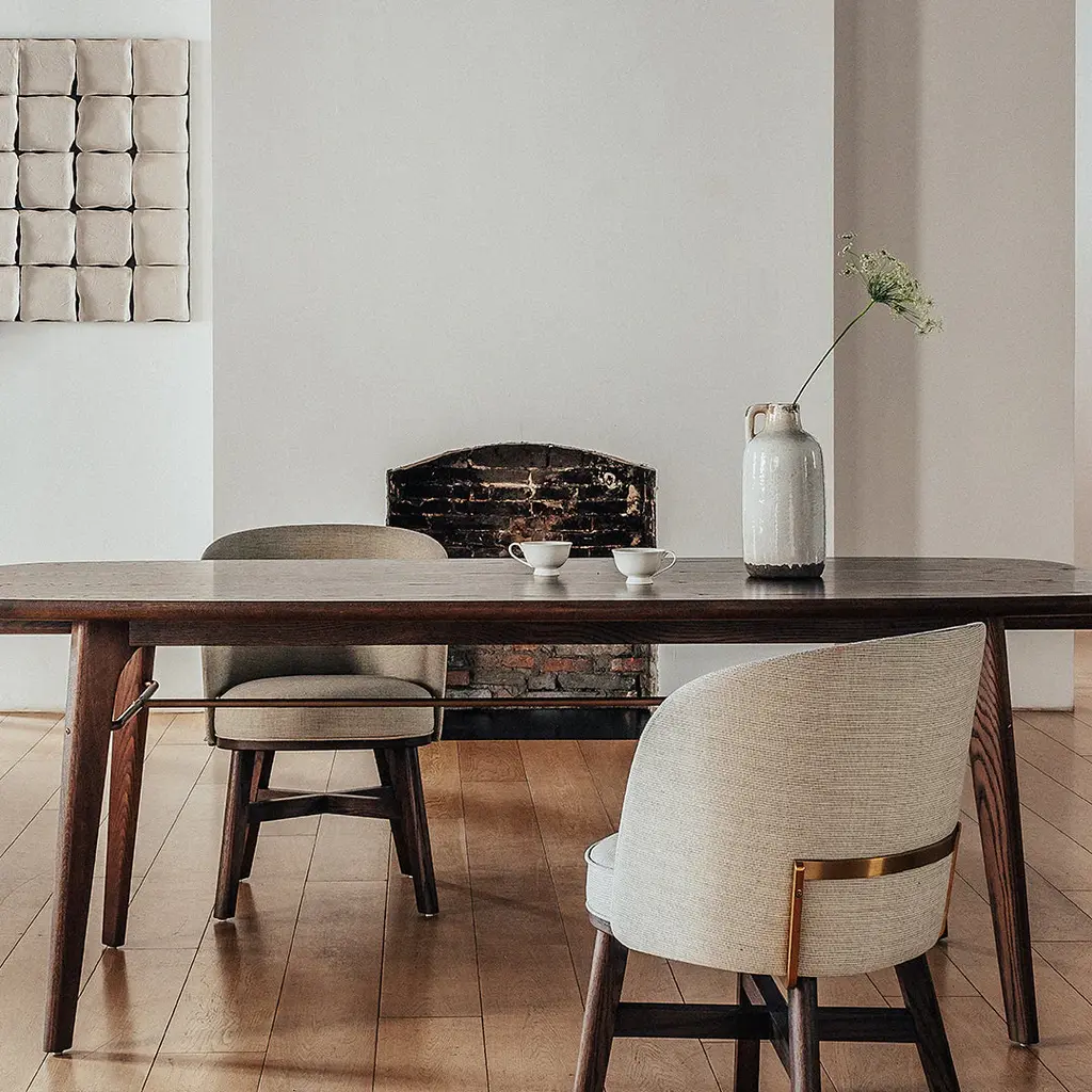 Inspired by Shanghai's iconic Bund, where the old seamlessly merges with the new and where rich history coexists with modern life, the Mr. B collection reflects a harmonious blend of Eastern and Western cultures. The modern aesthetic is evident, yet the influence of traditional old culture is intricately woven into the details. The collection showcases a fusion between the robust wood structure derived from traditional carpentry heritage and the metal details that speak to an industrial influence. The well-tailored upholstery provides clean lines as well as a comfortable seating experience. The Mr. B collection is comprised of a dining chair, lounge chair , swivel bar chair , and a two-seater , each bringing an understated touch of sophistication. Suitable for both residential and hospitality spaces, these pieces embody the subtle elegance that captures the essence of Shanghai's spirit.