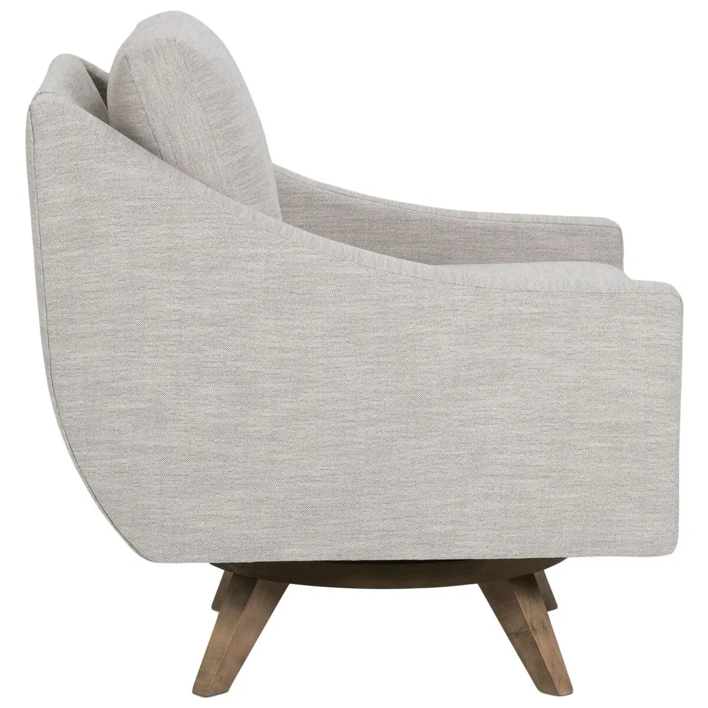 The Nash Swivel Chair's modern design is sure to stand out in any living space. With a linen-like feel, this chair offers both comfort and style, making it a perfect addition to your home decor.