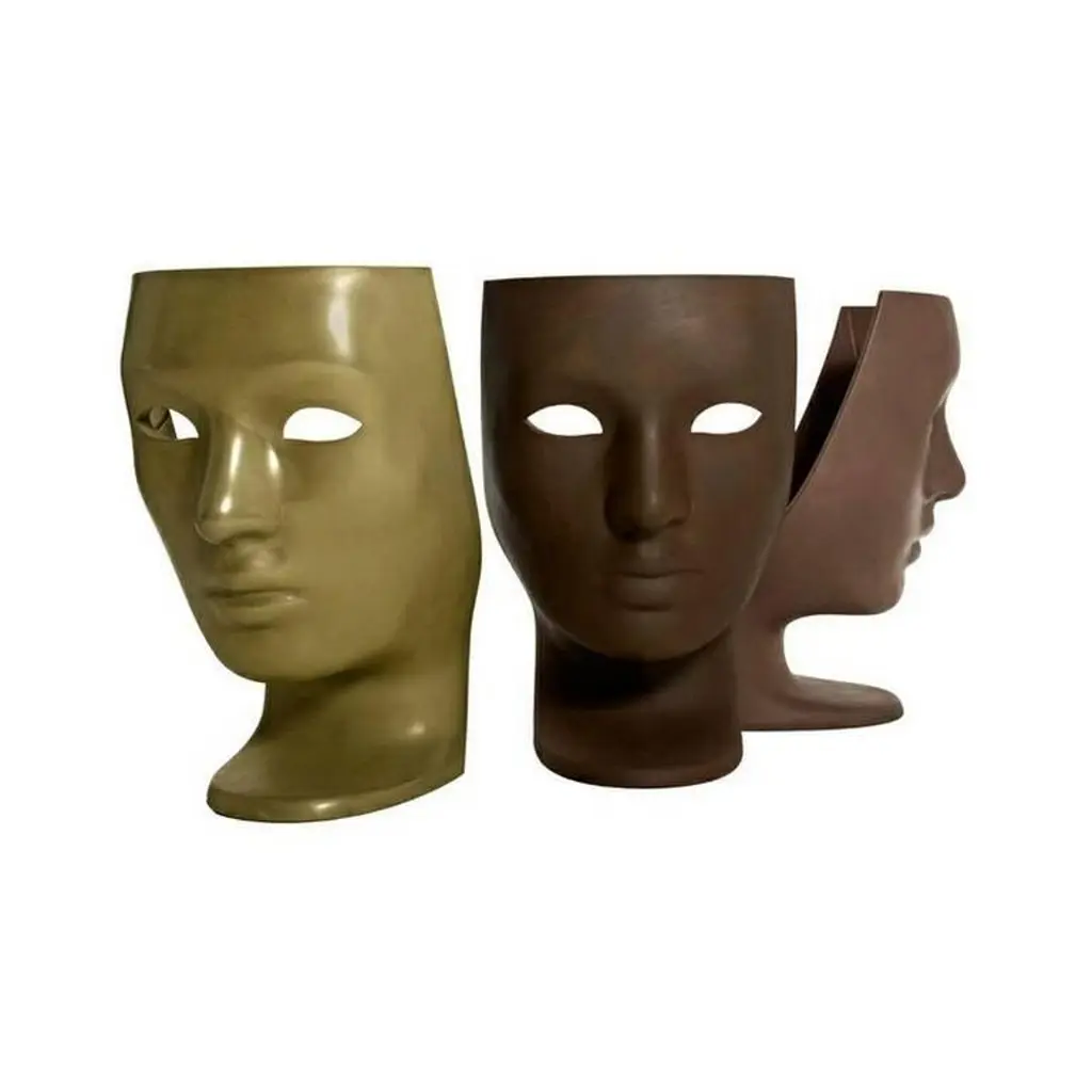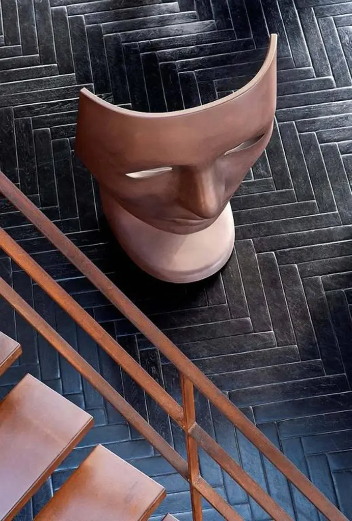 "Nemo" is an iconic polyethylene fixed or swivel monobloc head-armchair available in metal powder finishes (metal powder mixed with resin) such as iron, copper and brass. As these finishes contain metal powder, natural oxidation has to be considered as a peculiar feature of the armchair and not as a defect. Indoor use only.DIMENSIONS:D. 32.6", W. 35.4", H. 53.1", Seat H. 16.1" FABIO NOVEMBRE uses furniture design to tell intense and fascinating stories in which the protagonist is often the human figure. This human figure is capable of becoming abstract and universal, able to propose a mythical beauty as occurred in Greek art. So that Nemo, a face with classic features, is hollowed out to create an inhabitable space. The result is a head-armchair to be lived from the inside. Like a mask, it simultaneously conceals and reveals its inhabitant.Fabio Novembre said about Nemo:"In 2010 it happened that the name "Nemo" immediately evoked the famous little fish, protagonist of the movie of the same name, made by Pixar in 2003. If this question had been asked at the end of the nineteenth century, the answer would have probably been Captain Nemo, the protagonist of "Twenty Thousand Leagues Under the Sea" novel, written by Jules Verne in 1870. Going further back in time to the classical age, around 800 b.C, Nemo was the name chosen by Odysseus in order to deceive Polyphemus, the infamous cyclops of Homer's epic poem. Ulysses, used to disguise, declares that his name is Nemo ("No one"), in order to escape from a certain death: the destruction of the personality under the survival instinct. Despite I deeply feel a man of my era, the Greek origins of my native land make me link Nemo with Odysseus. Hence a name becomes a mask used to hide an identity. Mask which in the Greek theatre is also called "persona" ("person"), recalling the name sound that plays the part of amplifying the voice.It's a project born between the drawing by Gio' Ponti of 1950 "Un disegno è un’idea" ("A drawing is an idea") and "One, "No One and One Hundred Thousand" novel by Pirandello, in order to create a new identity, with no sexual and geographical features. An identity denied for a renewed idea of collectivity, made of eyes searching each other, beyond borders and barriers".