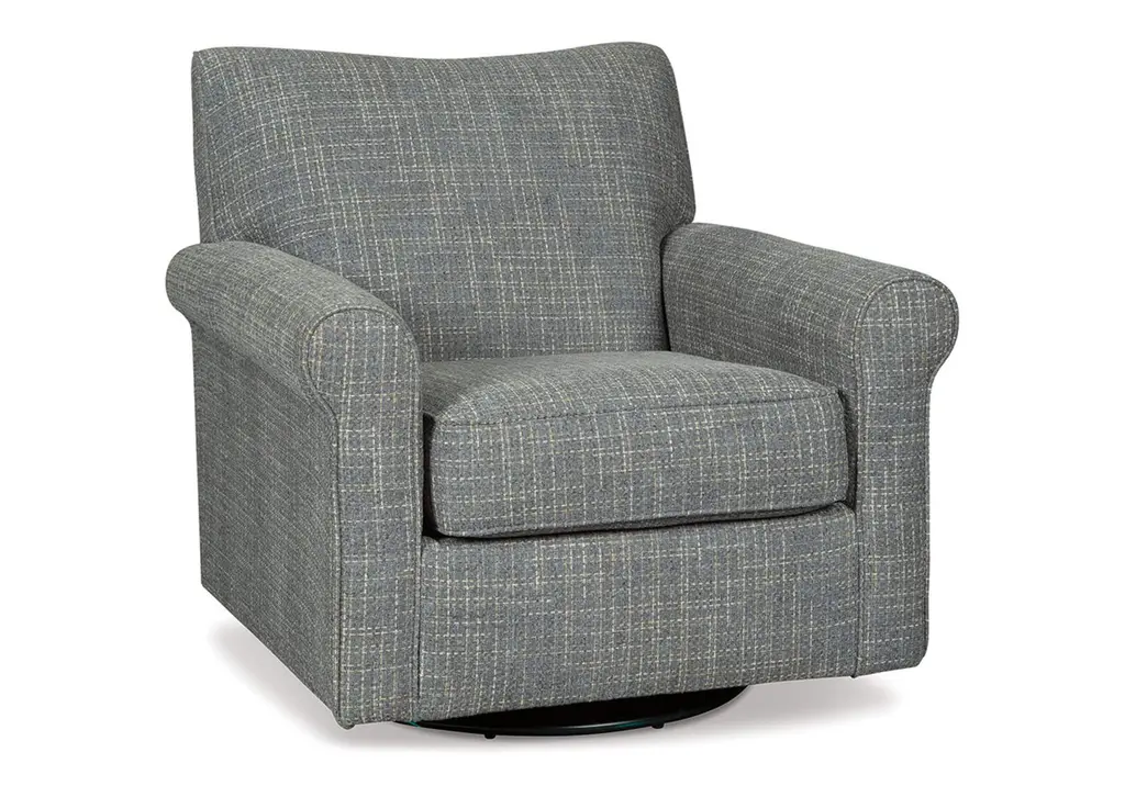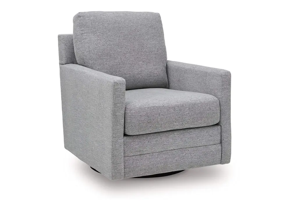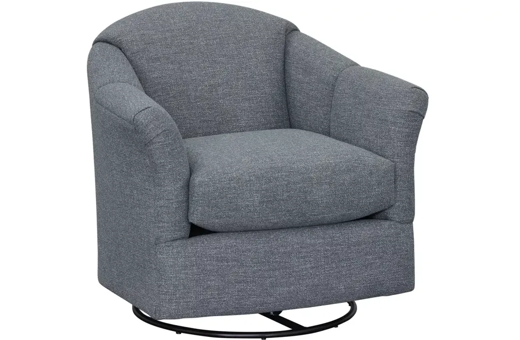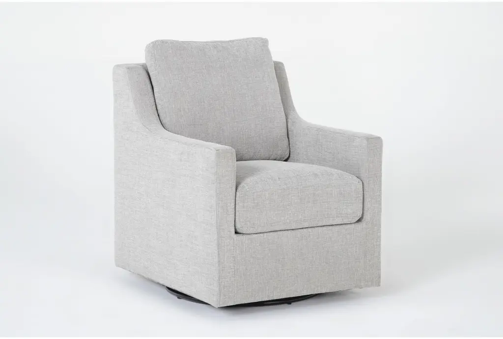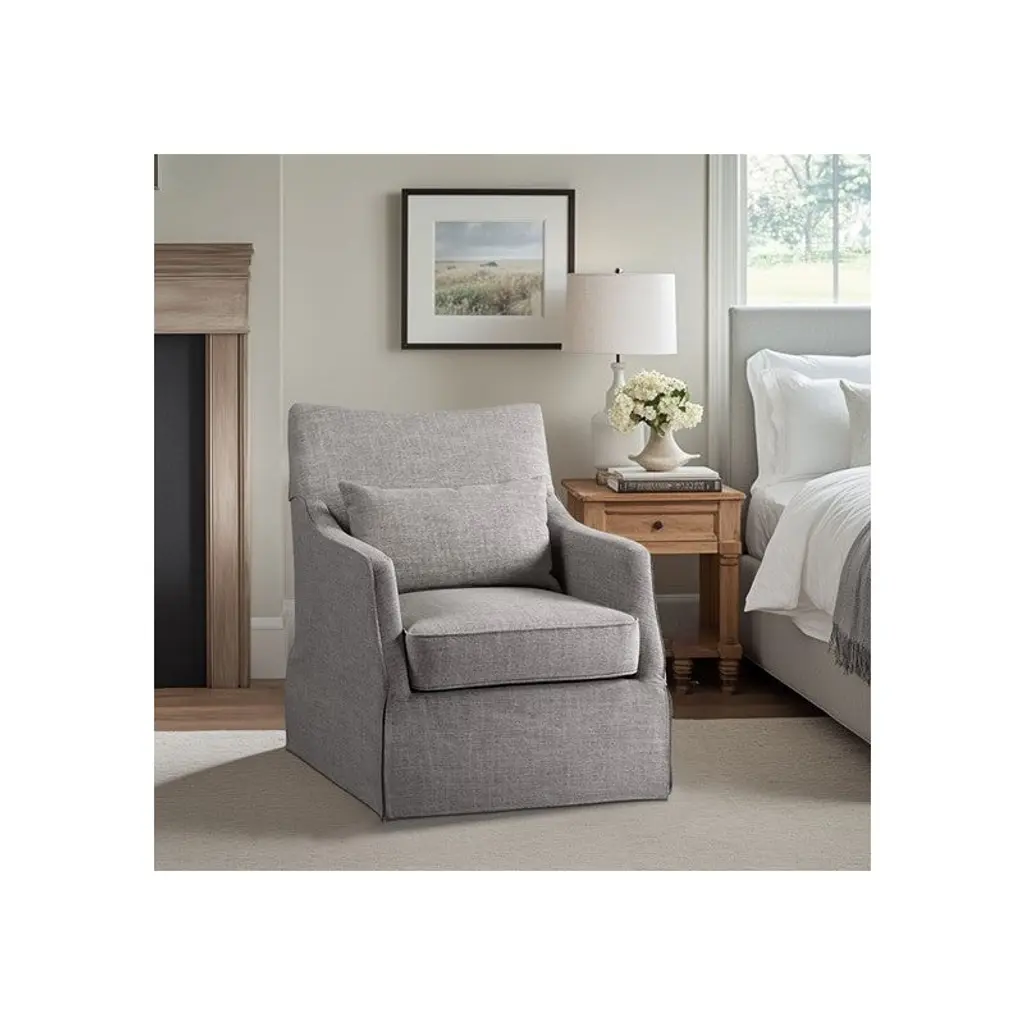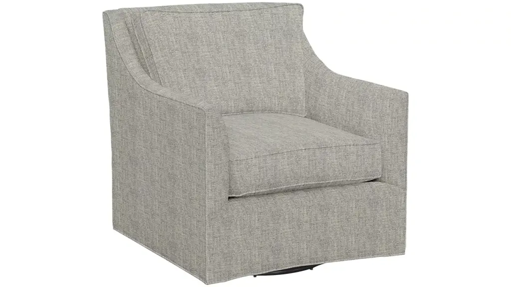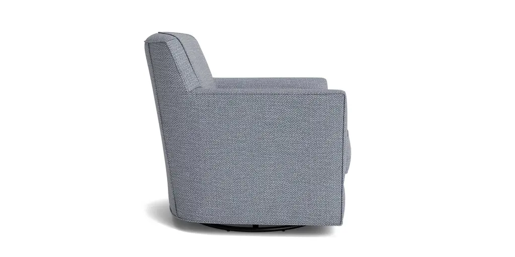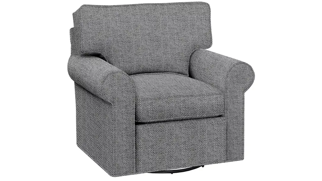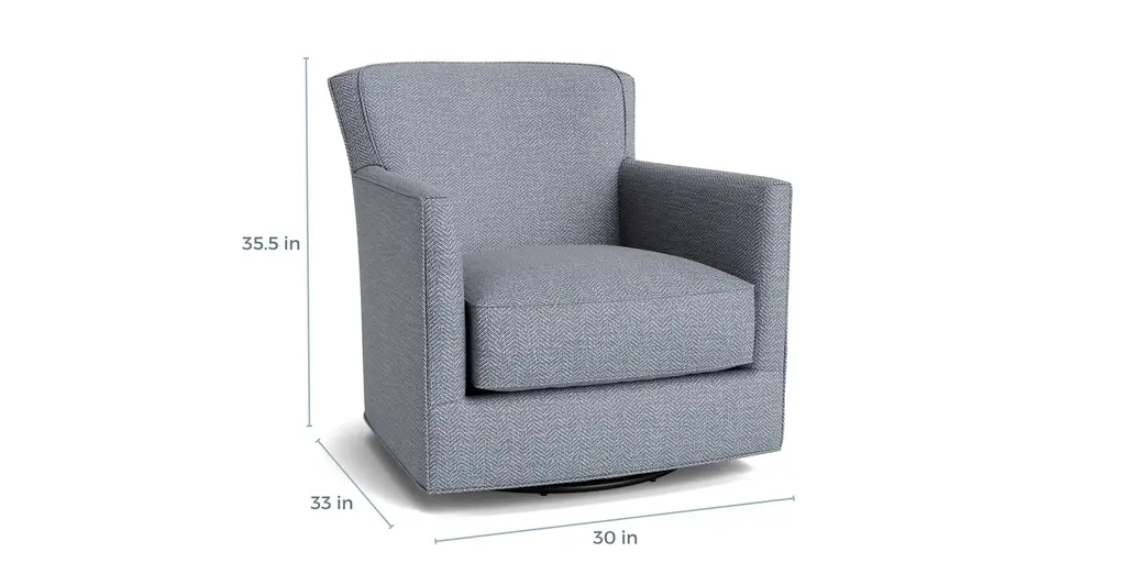With the New American Living Thin Track Arm Swivel Chair, we put fine design in motion to magnify all your relaxing moments. This one chairor, better yet, a paircan transform the relaxation quotient of any room - living room, office, bedroom, even nursery. The plush box seat cushion is balanced by a padded back and arms for looks that live up to their promise of always-reliable comfort. Choose from our designer fabrics for your personalized version of this American-artisan crafted chair.