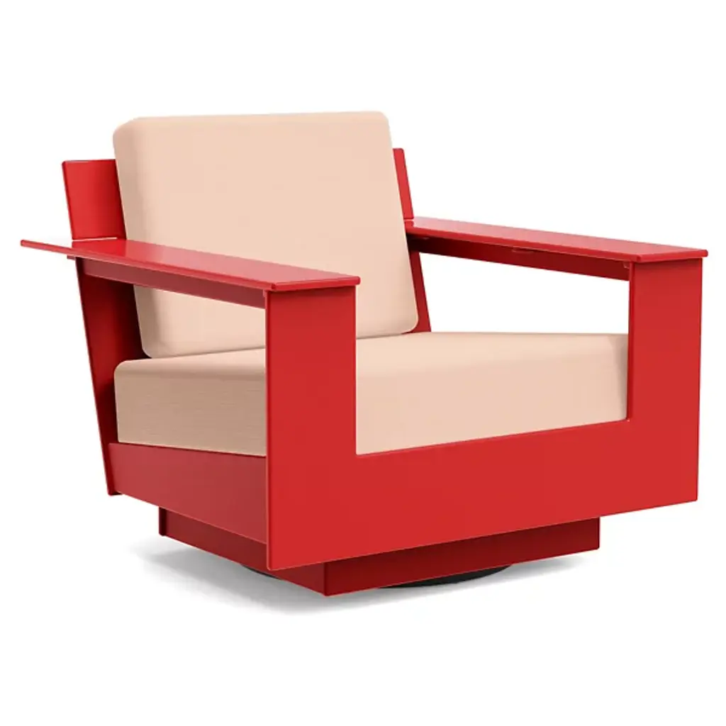 The Nisswa Lounge Swivel from Loll Designs helps one take it easy with arms outstretched and the back pleasantly leaning over its supportive features. It brings peace of mind when placing it with a swiveling mechanic that allows for various viewing angles. It complements the natural environment with a thoughtful HDPE construction that’s crafted from recycled milk jugs. Bold angles created by this innovative material lean one back and give the arms as well as a drink a resting place. Thick cushions slot inside with clean geometry. The sunbrella fabric cushions prove equally durable as they are comfortable.