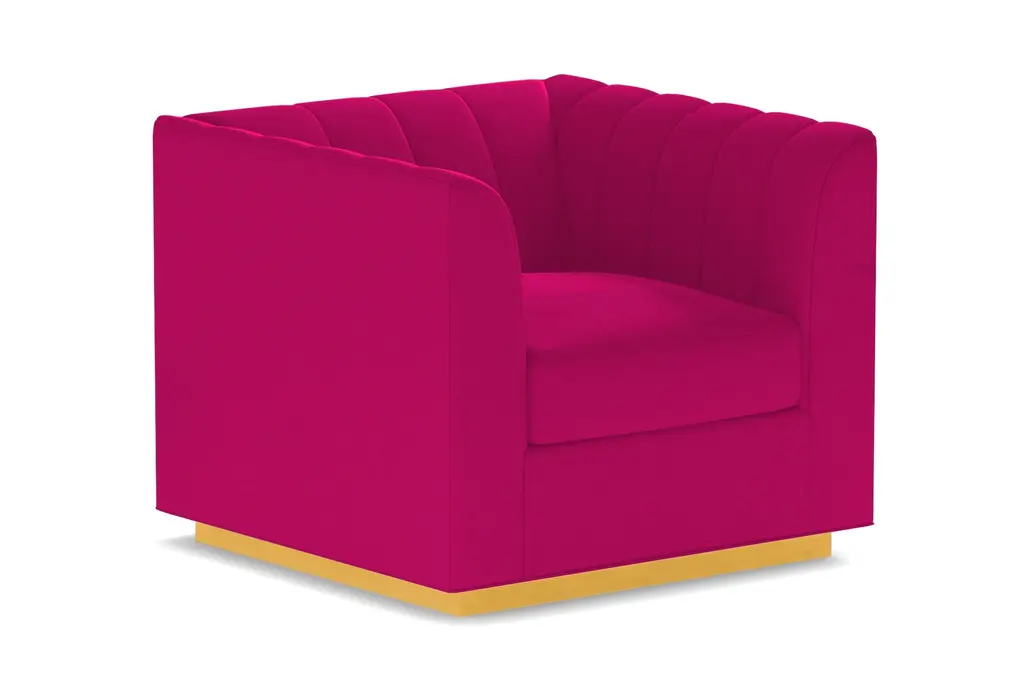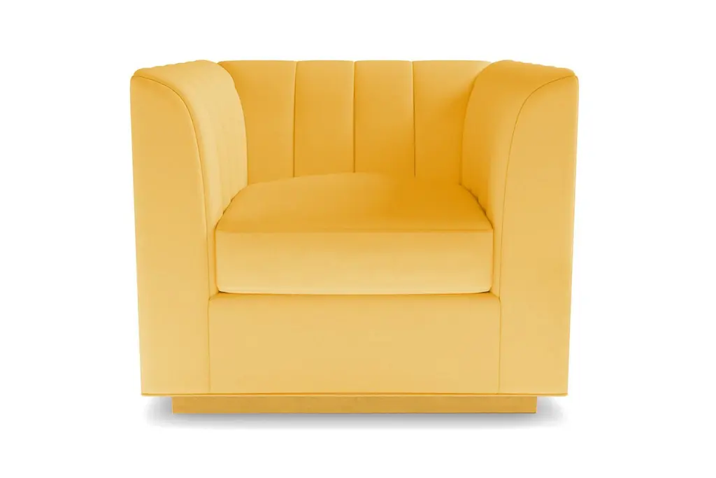 This sleek, and oversized swivel chair has a tight channel-tufted back that has an art deco flair with a modern silhouette. With high arms and a high back this chair envelopes you like an old school restaurant booth but the deep seat has you staying for dessert.