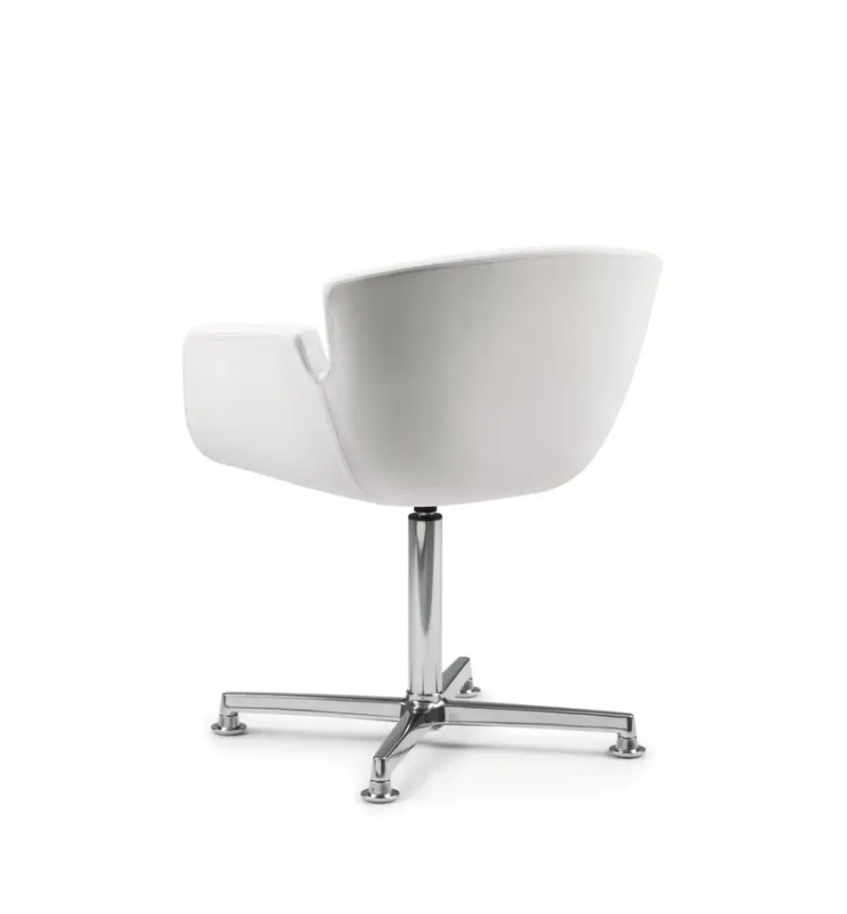 Nubia 2904 - Leather reception chair with 4-spoke base with armrests.Nubia - Armchairs monocoque with internal steel frame covered by jniected F.R. foam and fully upholstered.Shell available in 3 sizes.Base available in various versions: steel 4 legs, steel column with chromed round base, steel column with 4 spokes polished aluminium base.Also available swivel version and/or swivel with gas lift.Ideal for: conference rooms, meeting tables, restaurants, break areas, waiting areas.Optional: chrome frame.