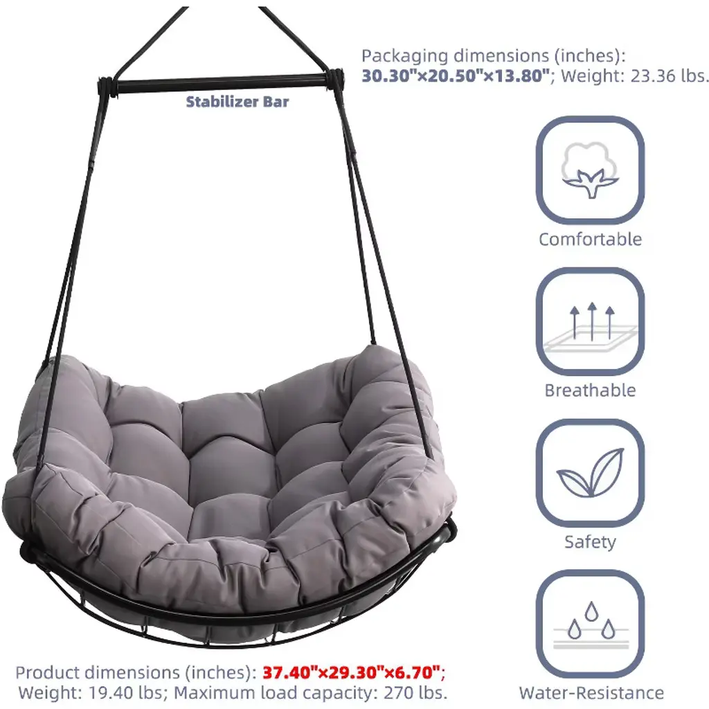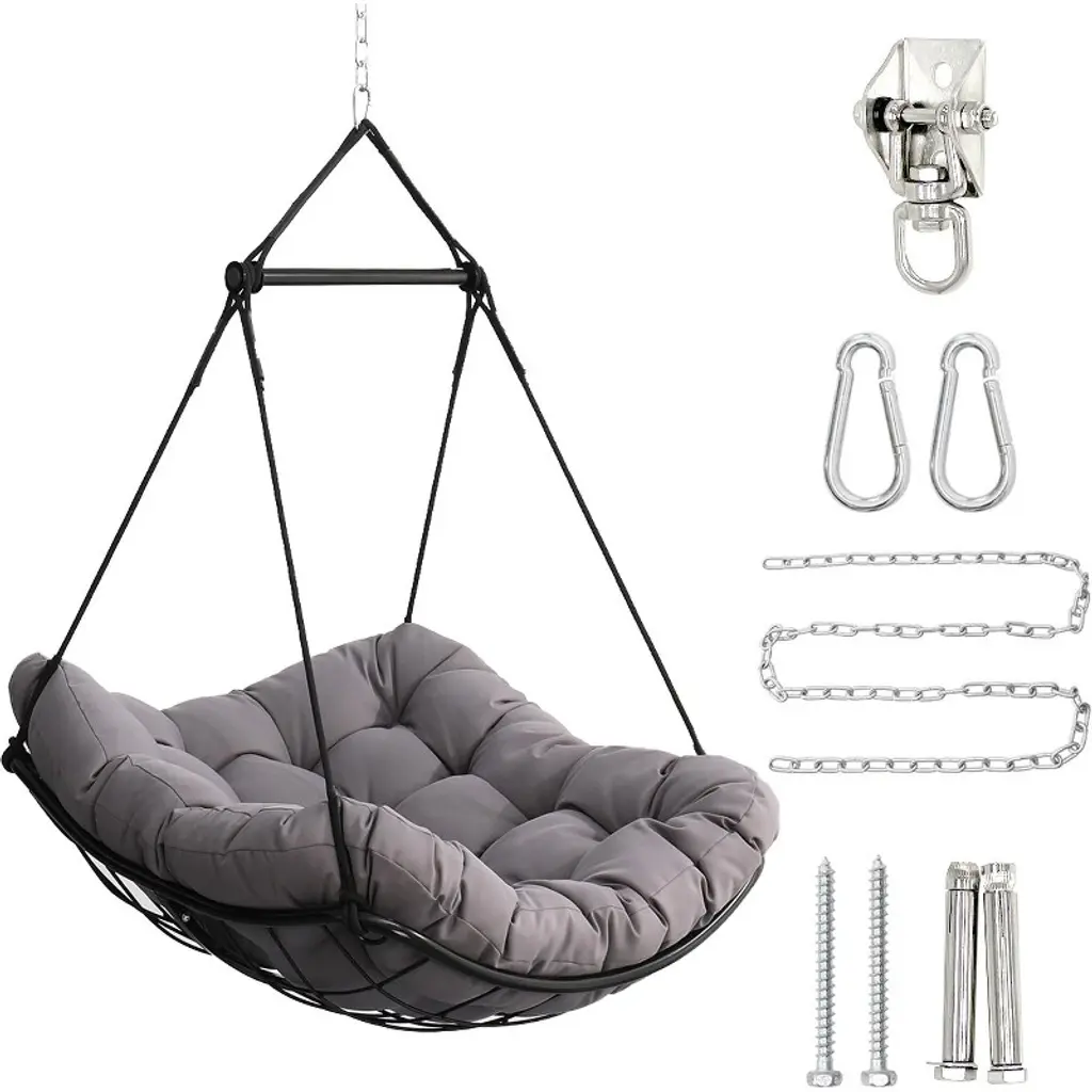 Okak Hanging Hammock Chair With Cushion,heavy-duty Steel Frame With Safety Rings,360° Swivel Outdoor Swing Chair For Patio,porch,garden,gray