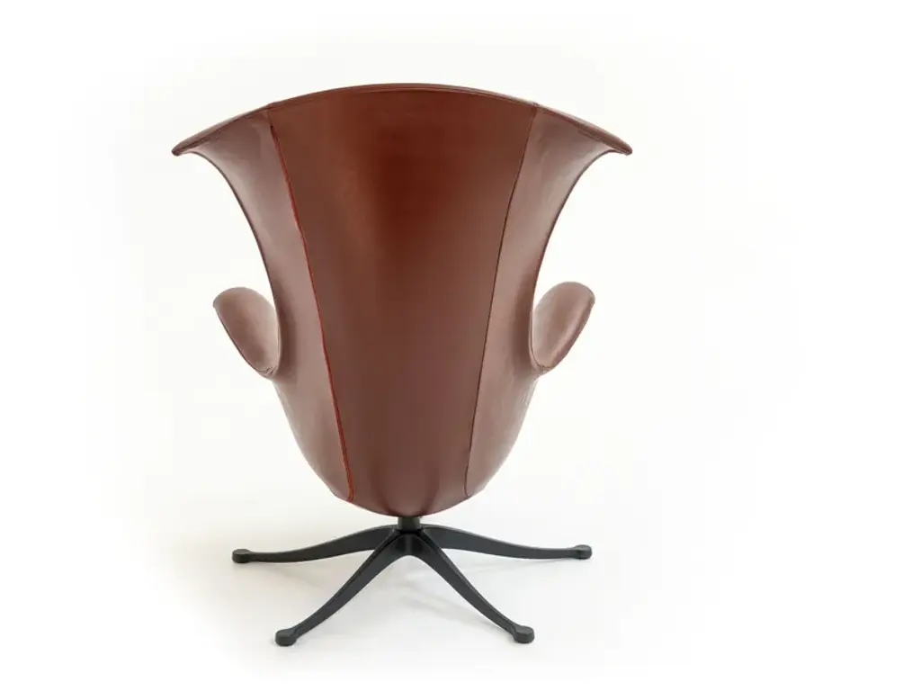 Conceived as the modelling of a single sheet of paper, One Page pays homage to the continuity of forms that enhances the sculptural poetics of Ron Arad and to the manufacturing expertise of the Friulian company. The polyurethane “sheet” fulfils a dual role as the rigid load-bearing external structure and as the flexible internal padding.The resultant armchair, lacking cushions and padding in the seat, armrests and backrest, nevertheless creates a continuum of comfort, an essential goal of this project of ergonomic research.The special production process superimposes a soft and flexible moulded form on a rigid frame, eliminating the need for traditional padding as a source of comfort.Designed for residential and contract markets alike, One Page has a five-point-star swivel base in die-cast aluminium and is available with or without a tilting mechanism. The footrest is made with similar production technology to extend the sheet concept that inspires the armchair.
