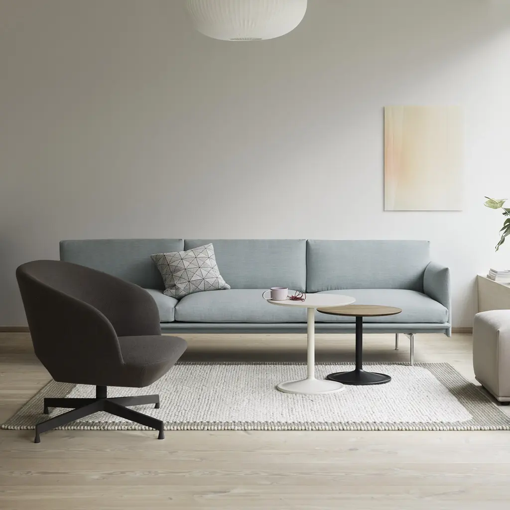 A swivel base adds a classic and dynamic feel to Muuto’s lounge chair, offering welcome flexibility and movement while seated. Oslo marries a compact design from Anderssen & Voll and expansive comfort, with the series’ signature geometric seat cushion as the foundation for a deeply embracing ease with the backrest that envelopes and supports. With its sculptural form and satisfying offer of repose, it makes a fine addition to both residential and public spaces.