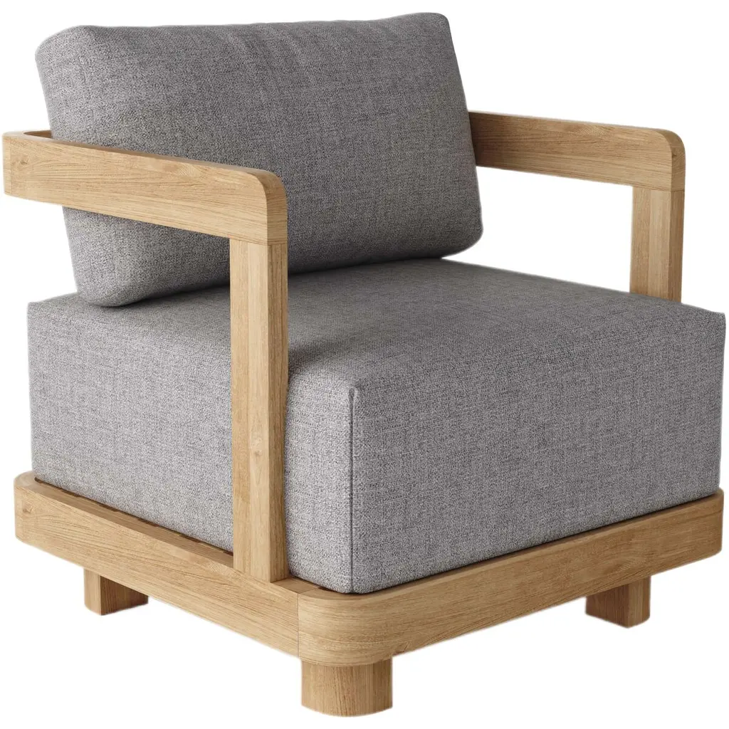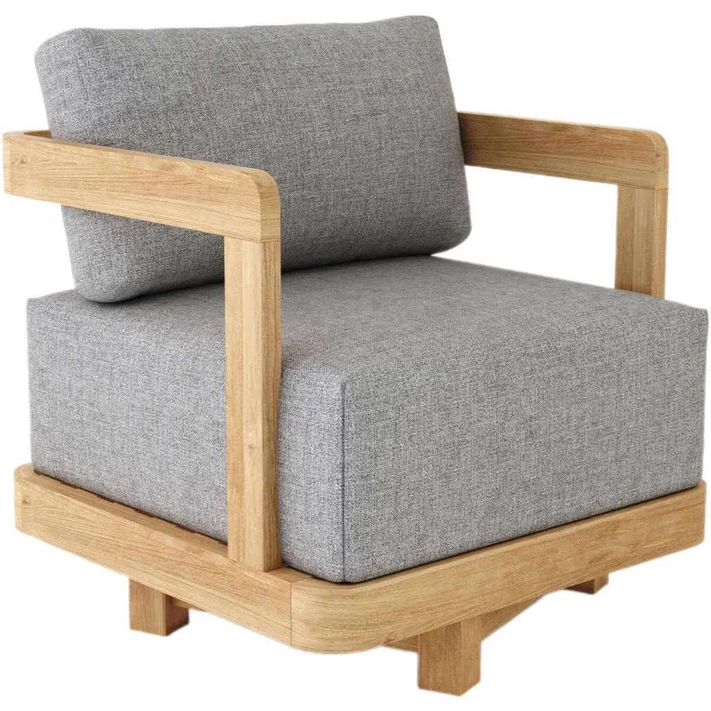 Modern, sleek and a comfort to sit on the Granada Deep Seating Armchair features a spacious seating space with a sleek curved design. Including large 8” seating cushions 26” wide by 26 ½” in length, its soft firmness and large seating space sinks you in for a comfortable deep seating experience. Add other matching pieces from the Granada Deep Seating Set such as the Swivel Armchair, Ottoman, Sofa, Loveseat, and Side and Coffee Table. Made of premium grade unfinished teak with cushions from All-Weather Sunbrella Fabrics, it’s the perfect furniture set for the outdoors as well as for indoor use. Cushions included with your choice of color option.