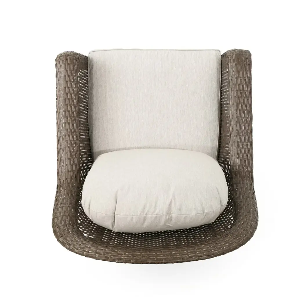Two-Piece Swivel Rocking Club Chair Set ¨C All-Weather Wicker Outdoor Lounge Chairs Enhance your outdoor living space with this two-piece swivel club chair set, designed for comfort, durability, and elegance. Whether placed on a patio, deck, or garden area, these chairs offer a luxurious seating experience with smooth rocking and swiveling features that allow you to soak in every beautiful view. Product Features Swivel and Rocking Motion: Each chair features a full 360-degree swivel base and gentle rocking function, allowing you to relax in your preferred direction and motion effortlessly. Durable Construction: Built with high-quality rattan over a sturdy iron frame, these chairs are designed to withstand outdoor elements while maintaining their structural integrity and appearance. Weather-Resistant Materials: The handwoven wicker is naturally resistant to weather, ensuring lasting beauty and comfort in various outdoor conditions. Comfortable Cushions: Thick, water-resistant cushions provide plush support for hours of relaxation. Ideal for lounging, entertaining, or simply enjoying the outdoors. Functional Elegance: These club chairs bring a refined and inviting atmosphere to any outdoor setting while offering unmatched practicality and ease of use. This set includes two swivel rocking club chairs, perfect for sharing quiet moments or hosting guests in your backyard oasis. Built for comfort and crafted to last, they will quickly become your favorite place to unwind.