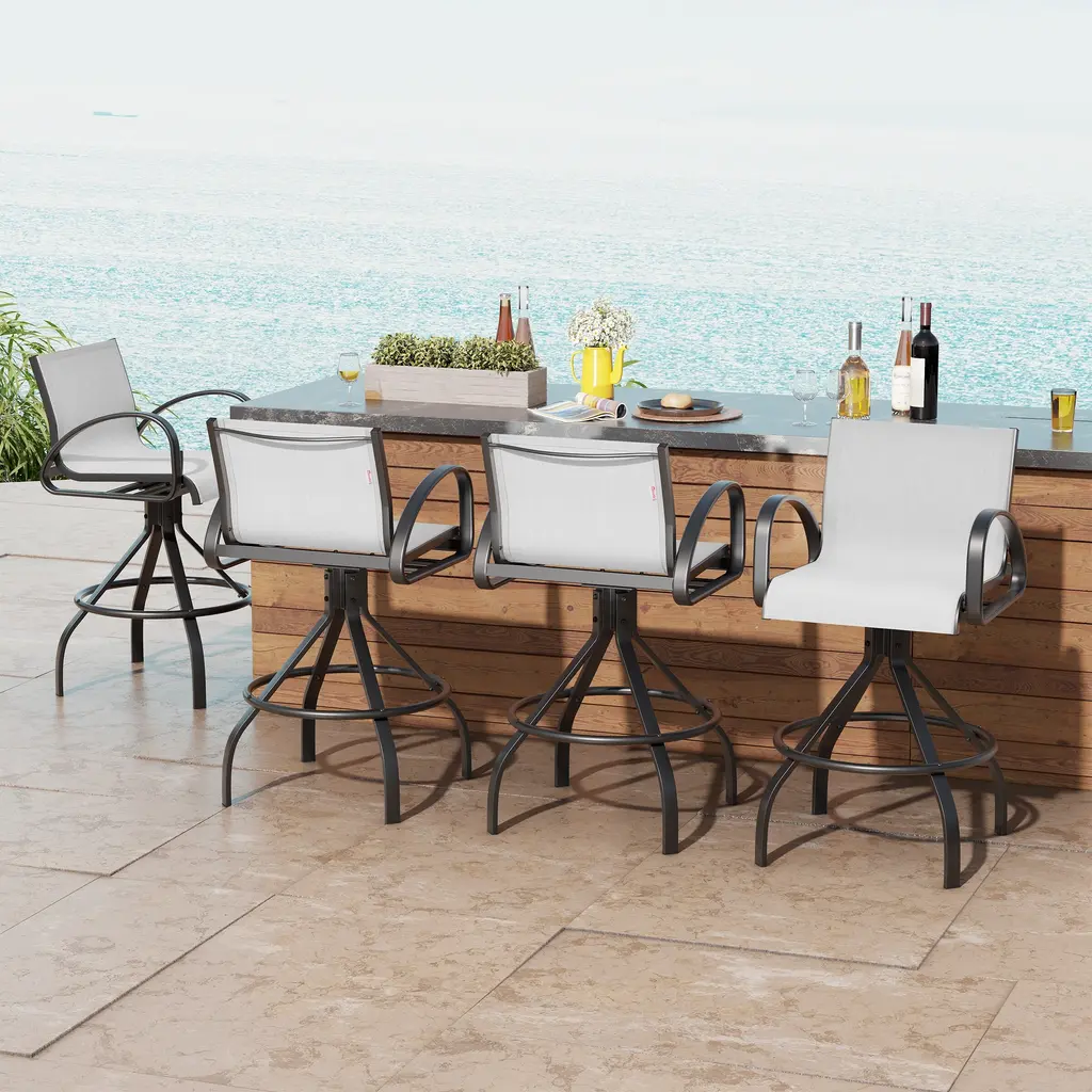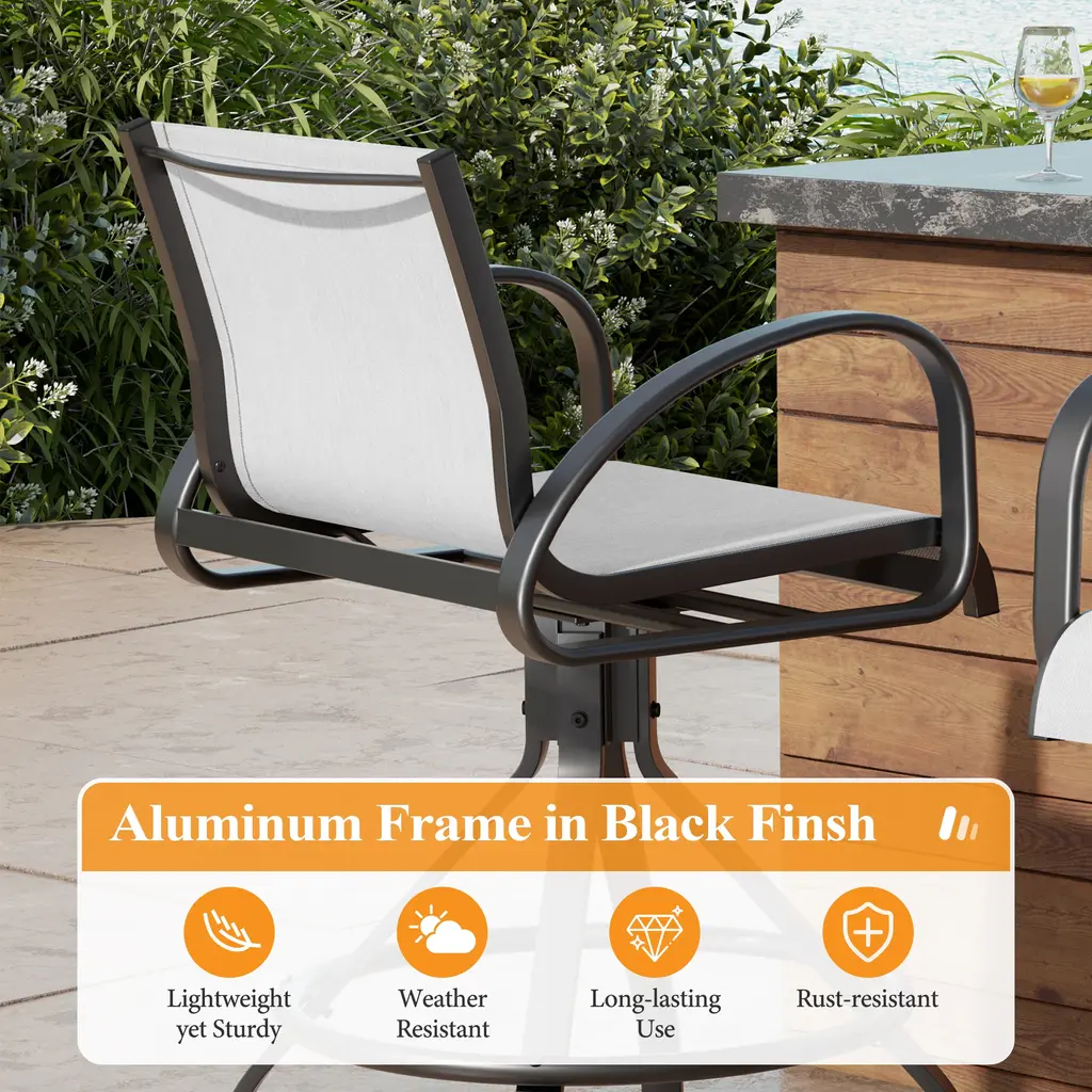 Outdoor Patio Swivel Aluminum Bar Stools Sunbrella Textilene Fabric - Augustine Oyster - 4Pcs