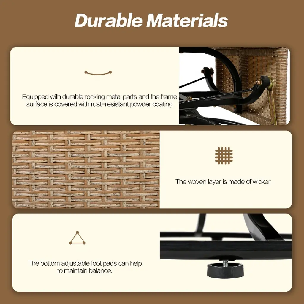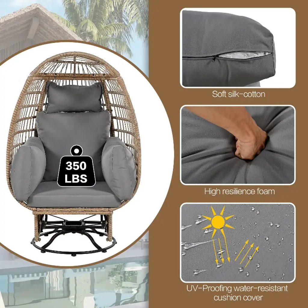 This rattan egg patio swivel chair with rocking function is perfect for your outdoor relaxation and can be used in a variety of settings including balconies, poolside and gardens. Made from durable wicker material, the chair has excellent weather and weather resistance, allowing it to be used in outdoor environments for extended periods of time without losing its beauty. The design with swing function allows you to easily shake your body, relax and enjoy your leisure time. The equipped seat cushion increases comfort and allows you to relax more. Whether you are soaking up the sun, admiring the scenery, or chatting with family and friends, this patio chair will create a comfortable atmosphere for your outdoor living.