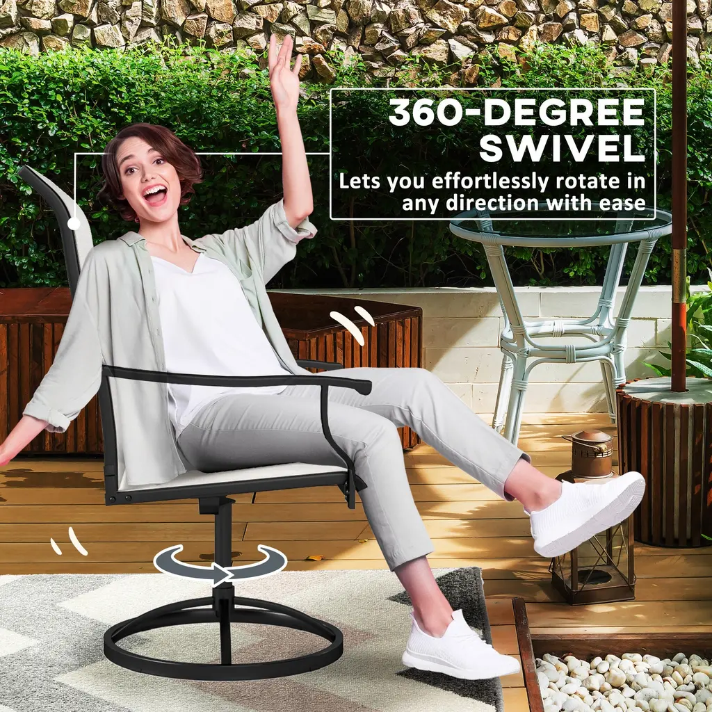 Outsunny Outdoor Patio Swivel Chairs Set Of 2, High Back Patio Dining Chairs With All-Weather Mesh Fabric And Metal Frame - Cream