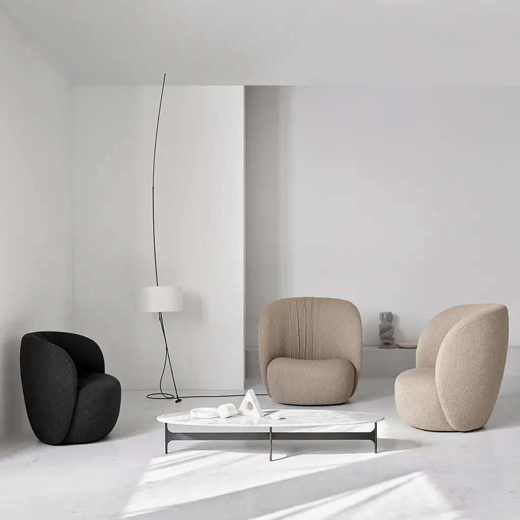 The Ovata Lounge Chair, created by Stockholm-based Note Design Studio for Wendelbo, transforms botanical inspiration into an exceptional seating experience where visual comfort translates perfectly into physical reality. Inspired by the strong yet softly curved leaves of the succulent from which it takes its name, this chair combines sculptural beauty with ergonomic precision to create a truly immersive seating sanctuary. Available in two distinct sizes and base options, the Ovata offers versatility for various interior settings. The intimate small version (28.7" W × 27.6" D × 29.1" H) provides a perfectly proportioned accent chair for more compact spaces, while the generous large version (36.2" W × 31.1" D × 29.1" H) offers a more substantial presence for spacious living areas. Both sizes feature the collection's signature oval-shaped, pleated back that gently embraces the rounded seat cushion in a visual representation of comfort. What truly distinguishes the Ovata is its thoughtful engineering. The standard version features a discreet recessed base in black stained solid wood that provides stable support while maintaining the chair's floating appearance. For enhanced functionality, the swivel with return mechanism option raises the seat height slightly (17.3" in the small version, 16.14" in the large) while adding smooth, silent rotation that automatically returns to the original positionideal for open-concept spaces where conversational flexibility is desired. The chair's exceptional comfort derives from Wendelbo's premium construction, featuring high-resilient, variable density polyurethane foam that creates the perfect balance of support and softness. The fixed upholstery ensures a consistently tailored appearance, with every curve and pleat meticulously engineered to maintain its shape through years of use. Part of a complete collection designed to accommodate any spatial setting, professional or residential alike, the Ovata Lounge Chair creates an inviting sanctuary that harmonizes functional comfort with sculptural beautyproving that truly exceptional design should satisfy both visual and physical expectations.