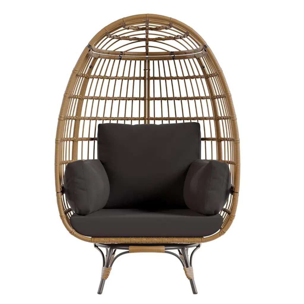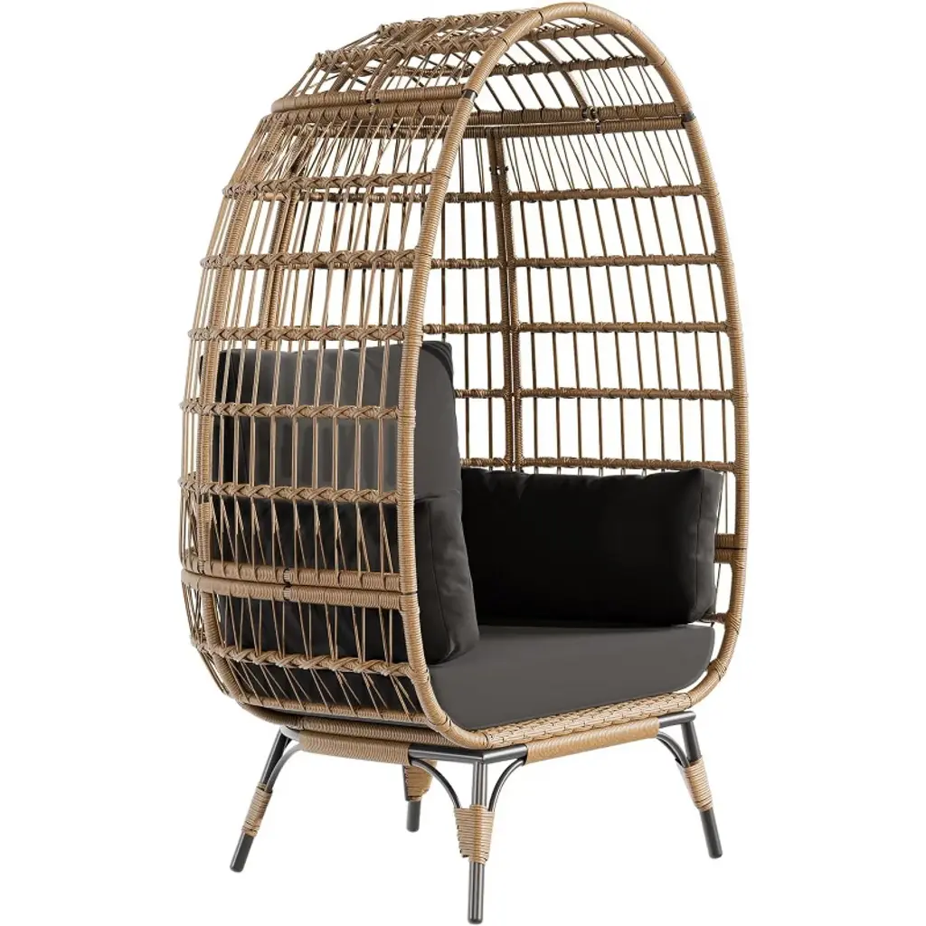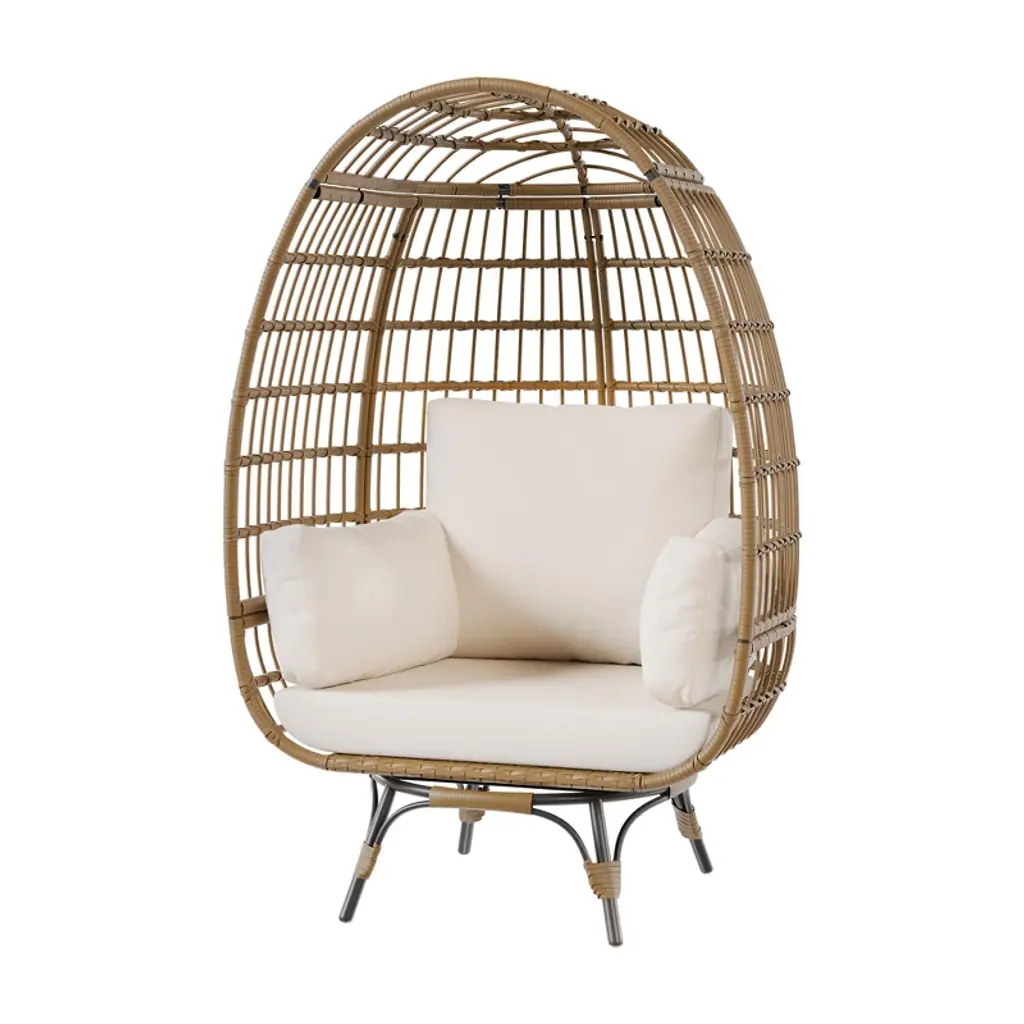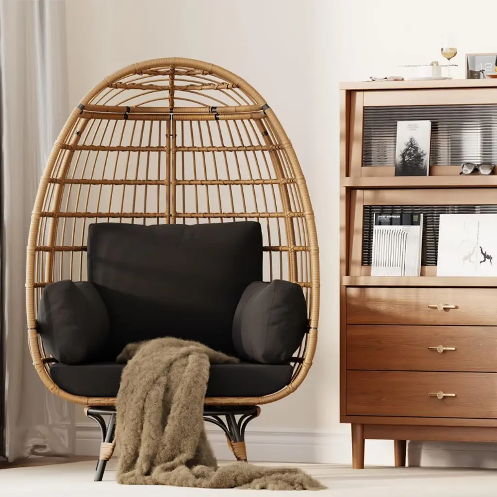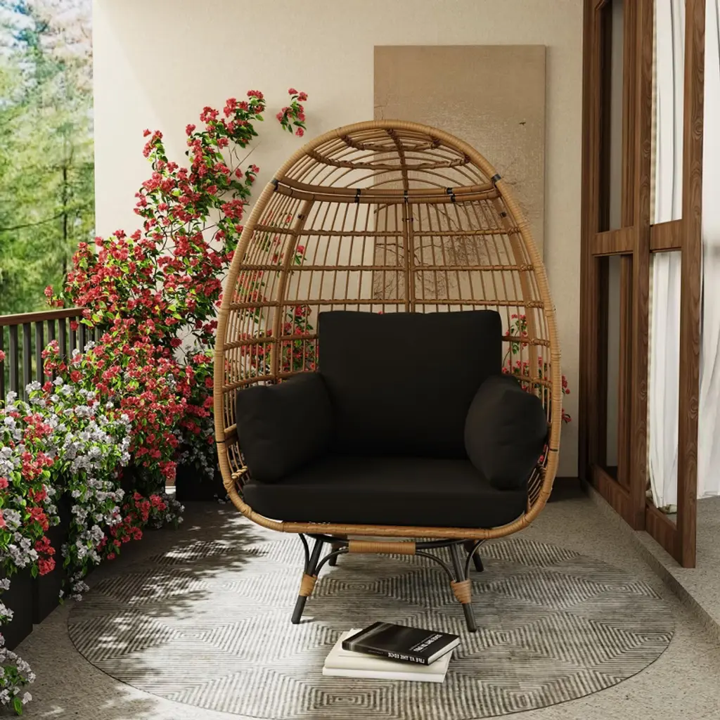 Oversize 360° Swivel Egg Chair – Indoor Outdoor Rattan Lounge Chair With Stand & 4 Cushions